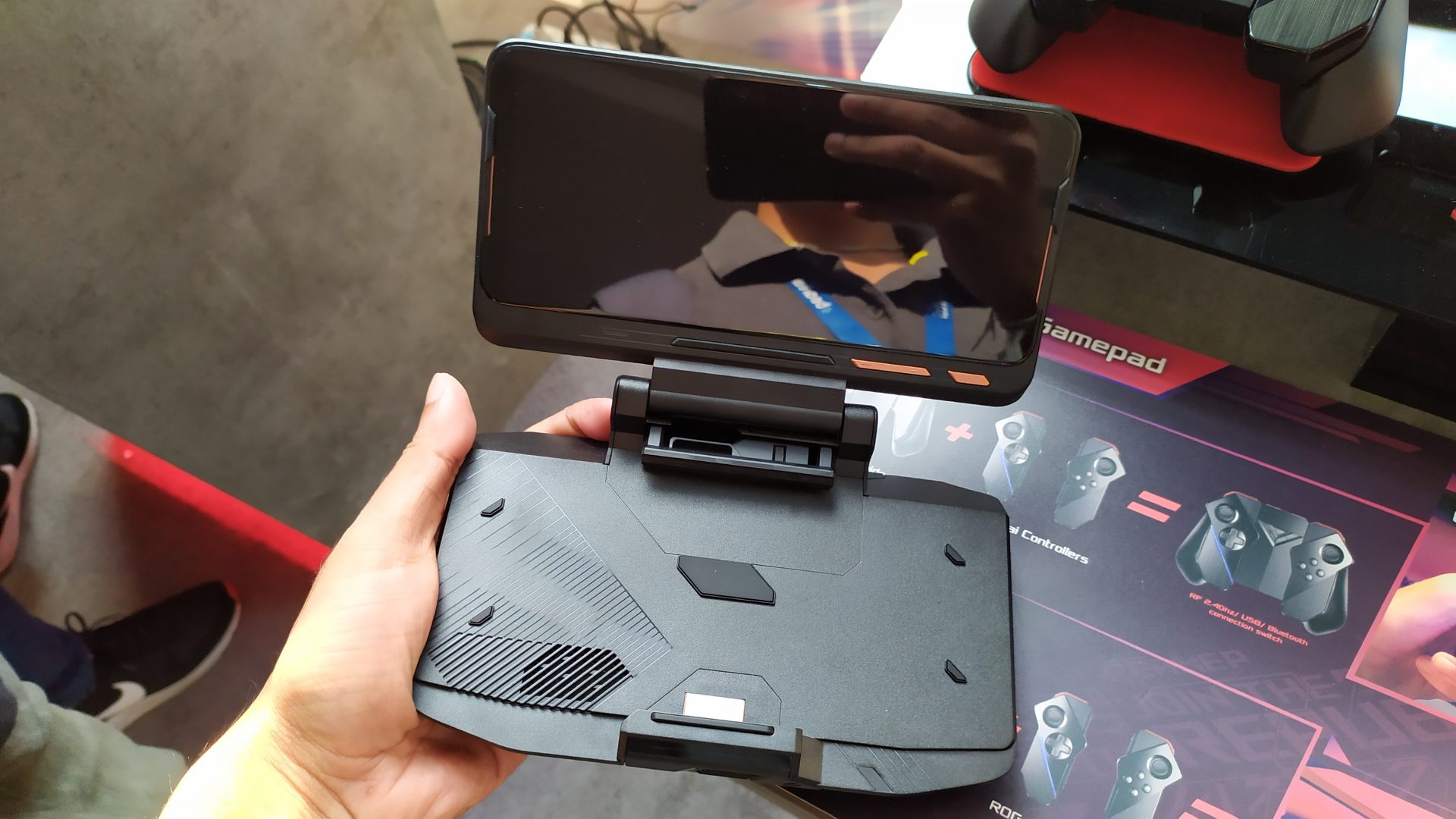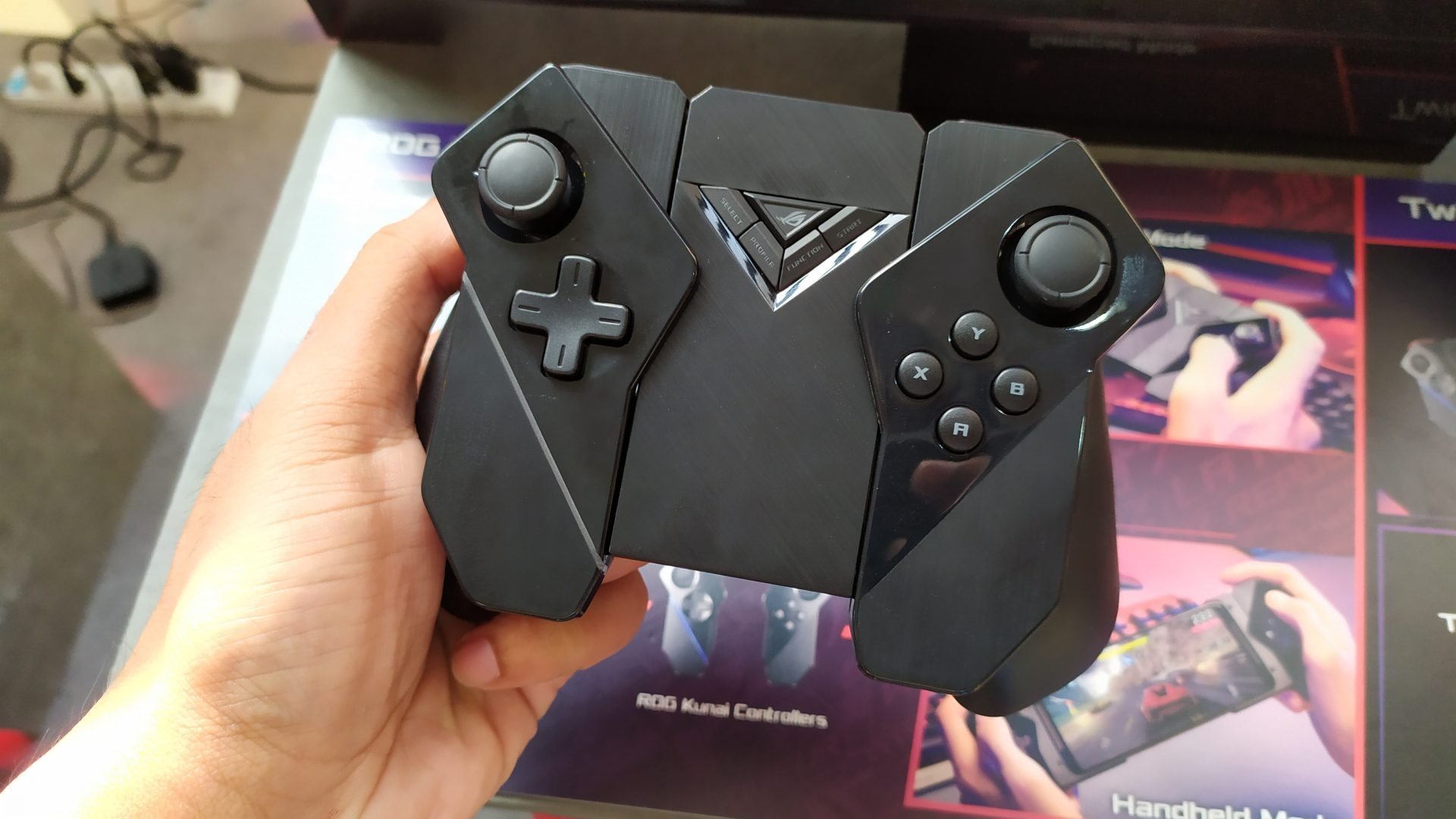Gamepad (หรือที่ชอบเรียกติดปากว่า Joystick) ที่สามารถประกอบให้เป็น Gamepad ชิ้นเดียว หรือถอดแยกแล้วใส่ประกอบใหม่ ให้เป็นรูปแบบ Handheld ได้ มีปุ่มถึง 25 ปุ่ม ทั้งบนตัวเครื่อง และรอบทิศทาง รองรับการเชื่อมต่อผ่านบลูทูธ และยังสามารถใช้งานกับพีซีได้ ผ่านสาย USB Type-C หรือ Wireless Dongle ก็ได้
