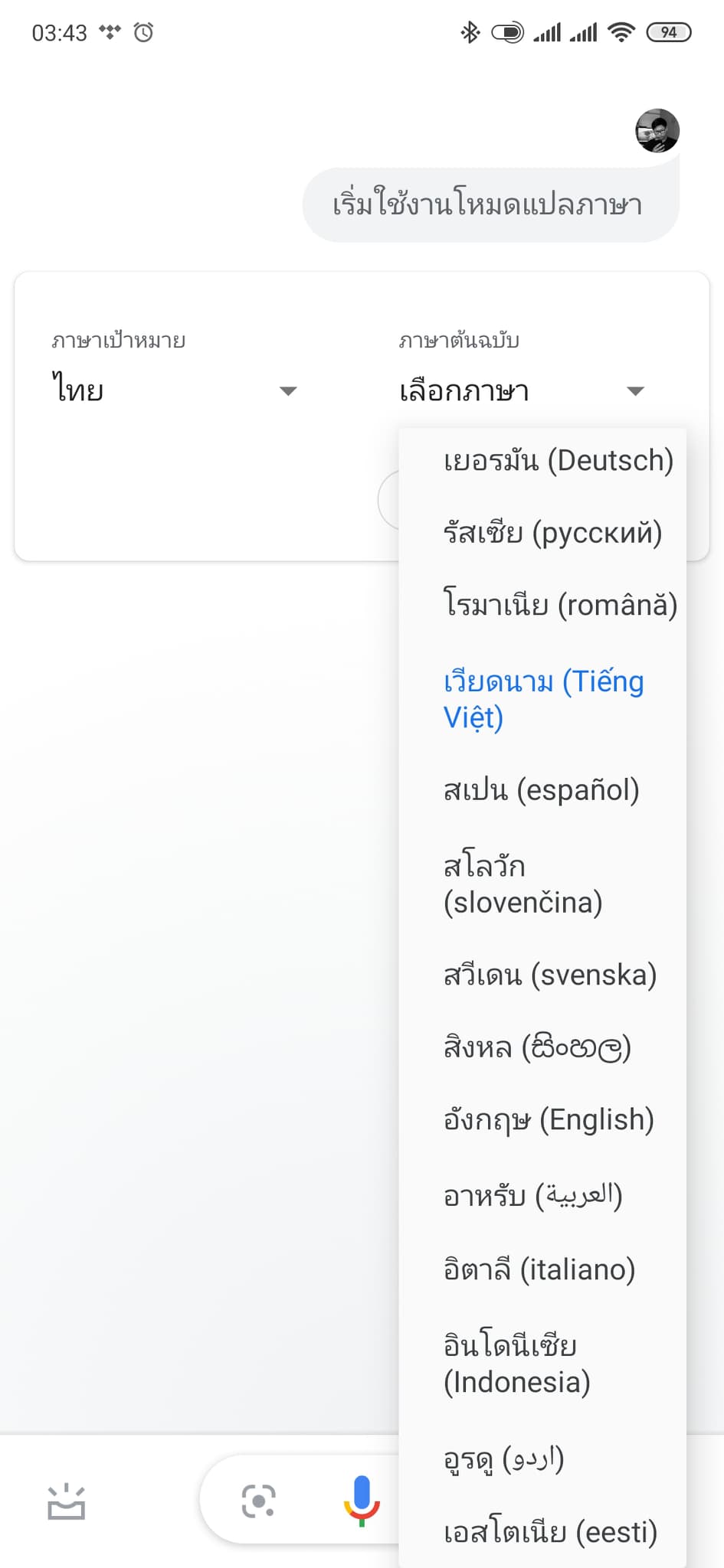 ก็จะมีหน้าต่างให้ตั้งค่าภาษาที่เราใช้ และภาษาที่เราต้องการจะแปล