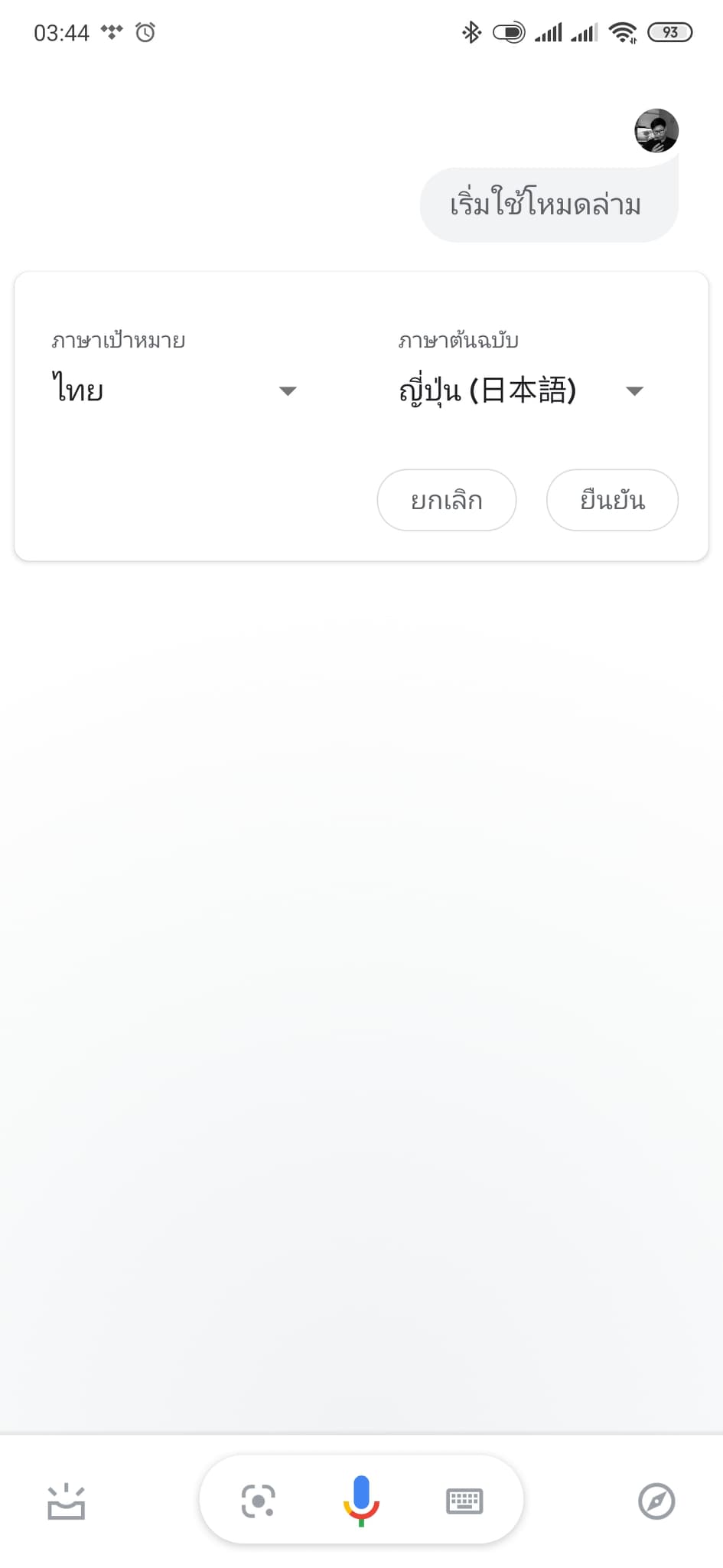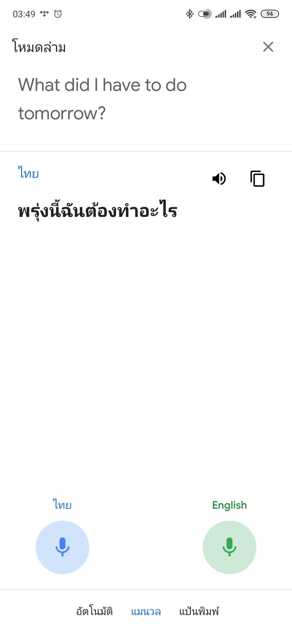 และในโหมดแป้นพิมพ์ก็สามารถพิมพ์ข้อความเพื่อแปลได้เลย และยังสับกลับไปมาได้ในทั้งสองภาษา