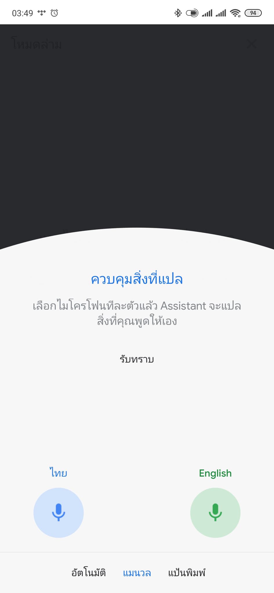 ส่วนในโหมดแมนวลเราสามารถสับกลับไปมาได้ระหว่างสองภาษา เพื่อผลัดกันพูดระหว่างผู้สื่อสารทั้งคู่