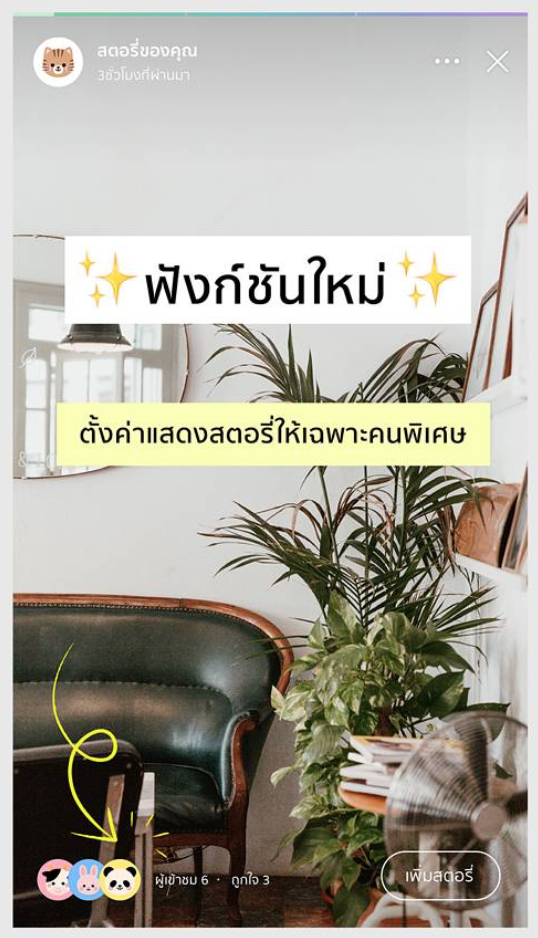 ใน LINE เวอร์ชันนี้ใหม่นี้เราสามารถตั้งค่า story ของเราให้เห็นเฉพาะคนที่เราอยากให้เห็นเท่านั้นได้ด้วย โดยผู้ใช้งานสามารถเลือกตั้งค่าได้สองแบบคือ