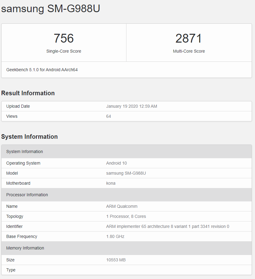 นอกจากนี้ ผลการทดสอบดังกล่าวยังทำให้ทราบว่า Galaxy S20 ทั้ง 3 รุ่น มาพร้อมแรม 12 GB และยังทำคะแนนทดสอบ Benchmark ได้สอดคล้องกับสมาร์ตโฟนรุ่นอื่น ๆ ที่ใช้ชิปเซ็ต Snapdragon 865 ที่ได้รับการทดสอบไปแล้วด้วย