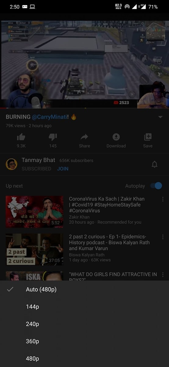 มีผู้ใช้สมาร์ตโฟน Android ในประเทศอินเดีย ได้รายงานว่า YouTube เริ่มจำกัดความละเอียดสูงสุดที่จะดูได้แค่ 480p เท่านั้น แม้ว่าจะเปิดวิดีโอที่มีความคมชัดถึง 4K ก็ตาม