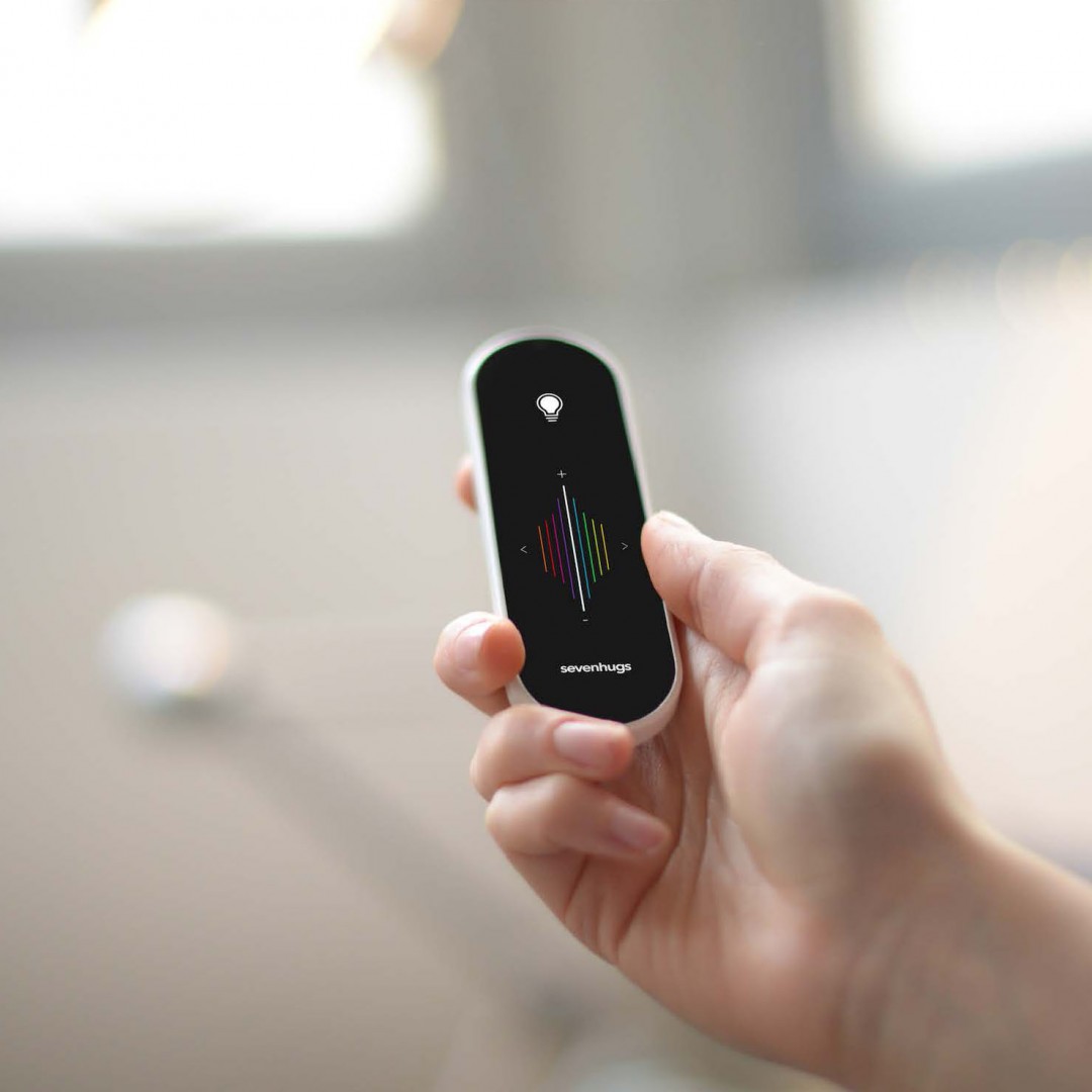 Smart Remote โดย Sevenhugs จากฝรั่งเศส ผู้สรรสร้างผลิตภัณฑ์ทางด้านเทคโนโลยี Smart Home ได้นำเสนอรีโมทนี้ในงาน CES2016 ซึ่งเป็นรีโมทแรกของโลกที่สามารถทำได้ รีโมทนี้ มีเทคโนโลยีจดจำอุปกรณ์ภายในบ้าน และมีระบบควบคุมการแสดงผล สามารถใช้งานภายในครอบครัวได้ง่าย เพียงแค่ระบุสิ่งที่ต้องการควบคุม และกดคลิก สามารถใช้ได้ควบคู่กับอุปกรณ์ Smart Home และบริการต่างๆ ในท้องตลาดที่มีการเปิด SDK (Software Development Kit) ไว้ สิ่งที่สามารถควบคุมได้นั้นมีไม่จำกัด เพื่อประสบการณ์ที่ดีกว่าของผู้ใช้