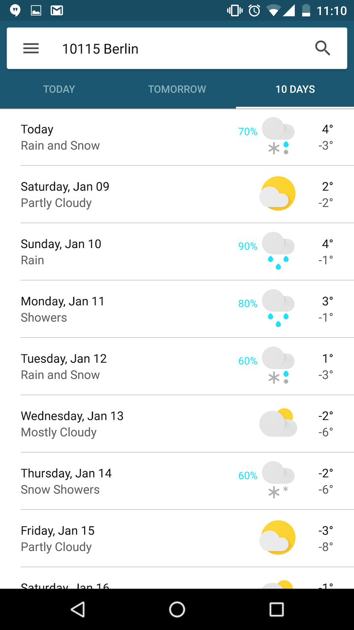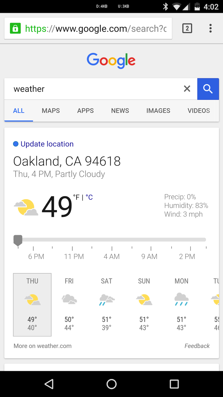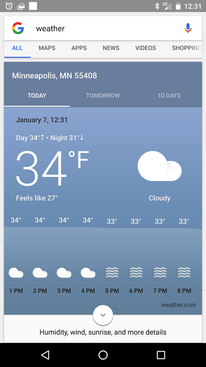 การ์ดที่ออกแบบใหม่นี้จะขยายให้แสดงใหญ่ขึ้นทั้งหน้าจอโดยจะแสดงเหมือนแอพพลิเคชั่นพยากรณ์อากาศ มี 3 แท็บสำหรับเปลี่ยนไปให้แสดง วันนี้, พรุ่งนี้ หรือ 10 วัน ก็ได้