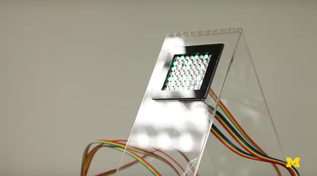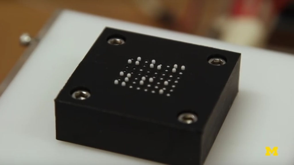ทาง The University of Michigan ได้ทำการพัฒนาจอแสดงผลอักษรเบรลล์โดยใช้ลูกโป่ง Microfluid (ระบบจัดการของเหลวหรือก๊าซที่มีขนาดเล็กมาก; ศูนย์ความเป็นเลิศด้านฟิสิกส์) ในการสร้างฟองอากาศขึ้นมาได้ตามต้องการ ซึ่งแตกต่างจากจอแสดงผลอักษรเบรลล์แบบอื่น ที่มีการใช้มอเตอร์ควบคุมปุ่มพลาสติกขึ้นลง ในตัวอุปกรณ์นี้จะใช้น้ำหรืออากาศเพื่อเติมฟองอากาศและสร้างเป็นรูปแบบของจุดที่นูนขึ้นมา โดยเทคนิคนี้เป็นการเติมเต็มช่องว่าง หมายความว่าสามารถแสดงผลในขนาดจอแท็บเล็ทได้ และสามารถพกพาได้สะดวก สิ่งนี้สามารถแสดงผลได้อย่างหลากหลายกว่าอุปกรณ์ทั่วไป