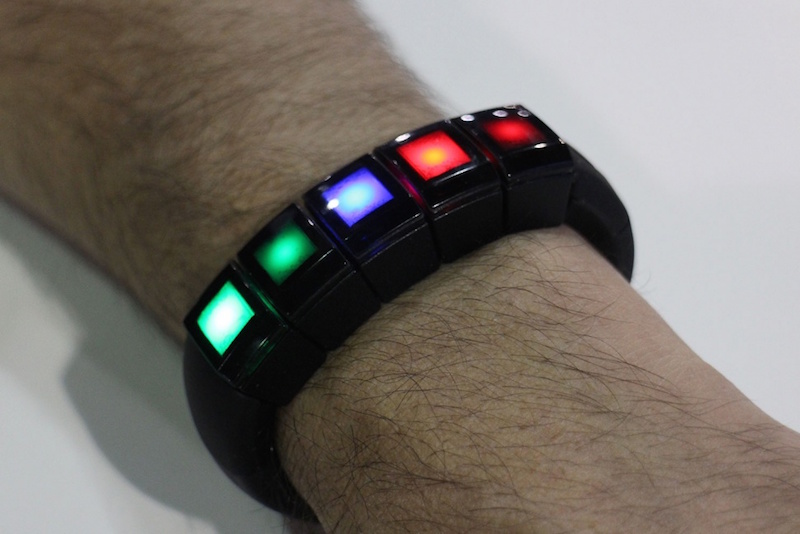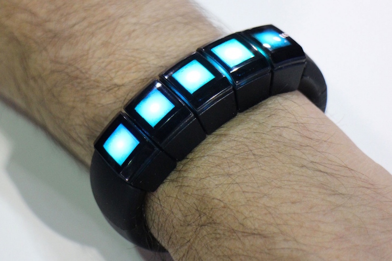 โดยกำไลข้อมือนี้มาพร้อมกับโมดูลขนาดเล็ก 5 โมดูลที่มีแสง และแต่ละโมดูลนั้นก็รองรับการสั่งงานผ่านการแตะสัมผัส 1 ครั้ง, แตะ 2 ครั้ง, หรือจะ แตะ 3 ครั้ง หรือทำงานร่วมกันเป็นหนึ่งเดียวเพื่อรับคำสั่งจากการสไลด์นิ้วผ่านโมดูลทั้ง 5