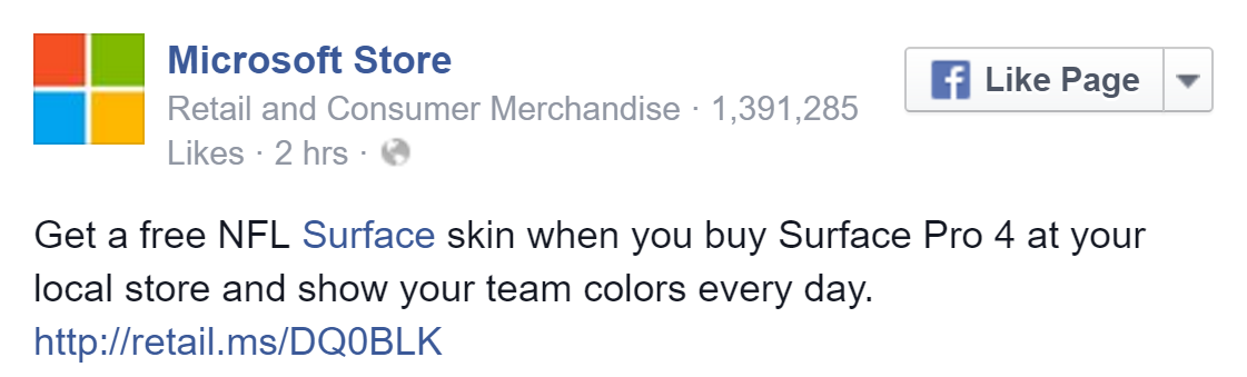 วันนี้ Microsoft ได้ประกาศใน Facebook ในเพจของ Microsoft Store ว่า จะมีฝาหลังของทีมอเมริกันฟุตบอลในลีก NFL หรือ National Football League แต่ละทีมสำหรับ Surface Pro 4 ให้เลือกรับได้ เมื่อซื้อ Surface Pro 4 ที่ Microsoft Store ซึ่งสามารถเลือกทีมที่ชอบได้