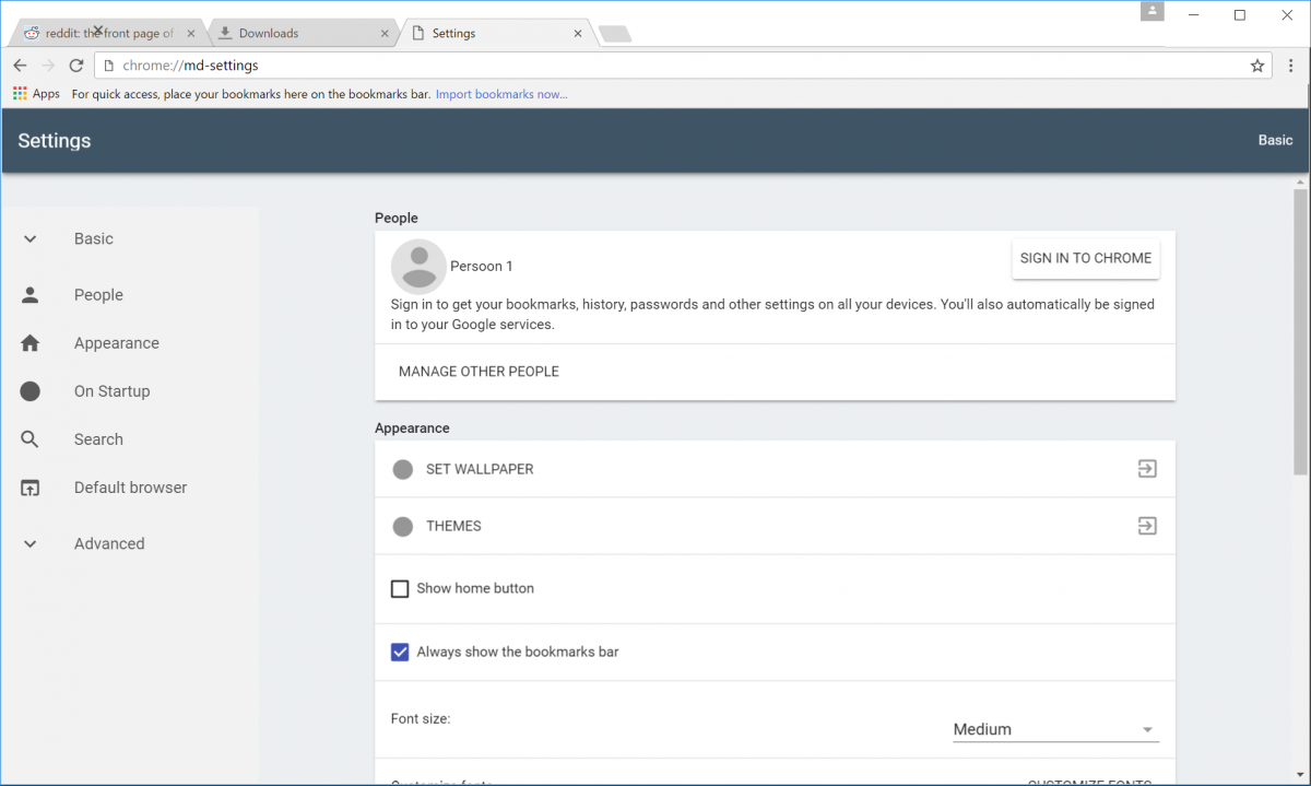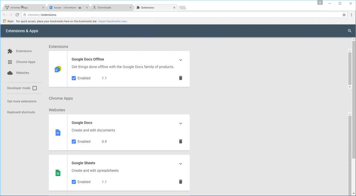 ซึ่งการที่เปลี่ยนไปใช้ Material Design นั้นยังพัฒนาไม่เสร็จสมบูรณ์ซึ่งถ้าตอนนี้อยากทดลองใช้ต้องไปเปิดใช้เองที่ chrome://flags โดยตามที่ทีมนักพัฒนาระบุไว้ในหน้าเว็บไซต์โปรเจ็กต์ Chromium นั้น Material Design จะถูกตั้งค่าเป็นค่าเริ่มต้นใน Chrome OS เวอร์ชั่น 50