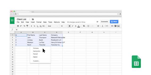 หลายๆคนก็คงเคยพบกับปัญหาที่ ข้อมูลเราคัดลอกมานั้น พอนำมาวางใน Google Sheet แล้วข้อมูลไม่ได้แยกตามคอลัมน์ โดยที่วันนี้ Google ได้เพิ่มความสามารถให้ Google Sheets ที่สามารถแยกข้อมูลที่ถูกคั่นไว้ ด้วยคอมม่า, ช่องว่าง และอื่นๆ ให้ไปอยู่ตามคอลัมน์