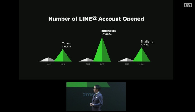 - 3 ประเทศหลักที่มีผู้ใช้งาน LINE@ เติบโตขึ้นมากคือ อินโดนิเซีย มีผู้ใช้งานแล้ว 1,018,634 ID , ไต้หวันมี 385,832 ID และประเทศไทยมี 475,497 ID
