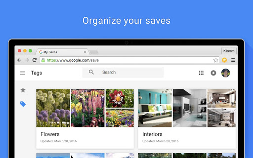 ในส่วนขยาย ‘Save to Google’ จะมีปุ่มสีเหลืองๆให้คลิก โดยจะคลิกบนหน้าเว็บไซต์ที่เราจะบันทึก โดยเราจะสามารถเลือกรูป Thumbnail ได้จากป็อปอัพที่ขึ้นมาและยังสามารถเพิ่มแท็กได้จากป็อปอัพเช่นกัน โดยทั้งหมดที่บันทึกไว้จะไปอยู่ใน “My Saves”