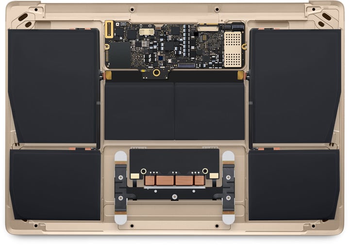 ต่อมาเรื่องของชิปประมวลผลนั้น สำหรับรุ่นนี้ Apple ได้ให้เป็นชิป Skylake Core M จาก Intel มา ซึ่งจะทำงานได้สูงสุดในโหมด Turbo Boost ถึง 3.1GHz ใน Benchmark ก็ยังได้ระบุว่ารุ่นนี้จะเร็วกว่ารุ่นที่แล้วถึง 15% สำหรับ GPU ที่มากับตัวชิปประมวลผลนั้นก็คือ Intel HD 515 ซึ่ง Apple ก็ได้ระบุว่า GPU รุ่นนี้จะทำงานได้เร็วกว่ารุ่นที่แล้วถึง 25%