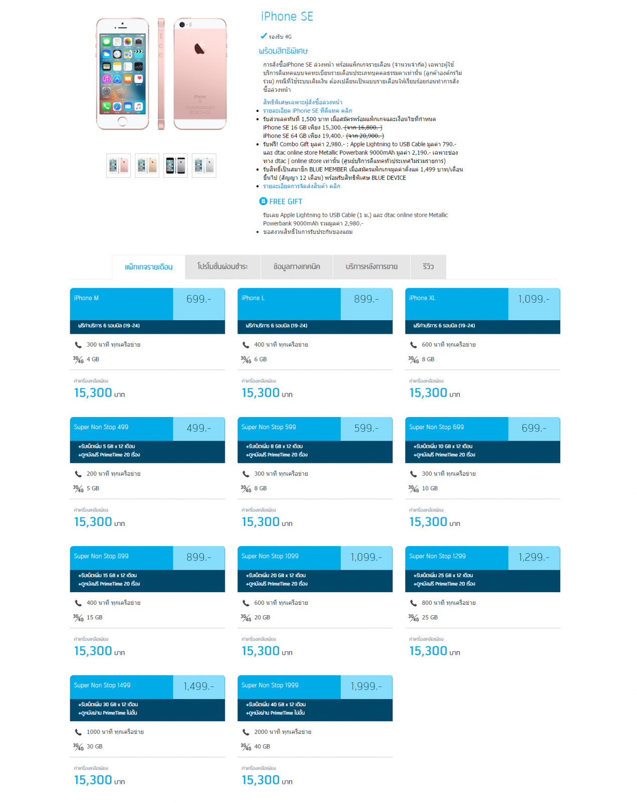 สามารถดูข้อมูลเพิ่มเติมและสั่งจองได้ที่ได้ที่ www.dtac.co.th/device/apple/iphone-se.html สามารถสั่งจองได้ตั้งแต่วันนี้ถึง 10 พฤษภาคม 2559 หรือจนกว่าสินค้าจะหมด