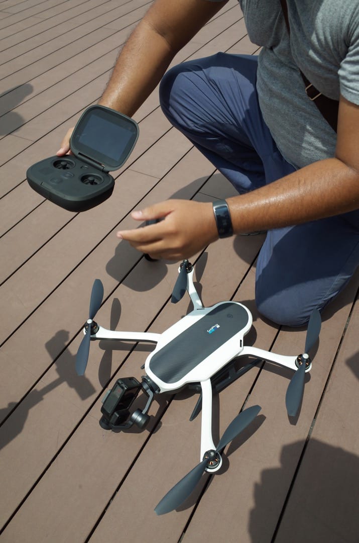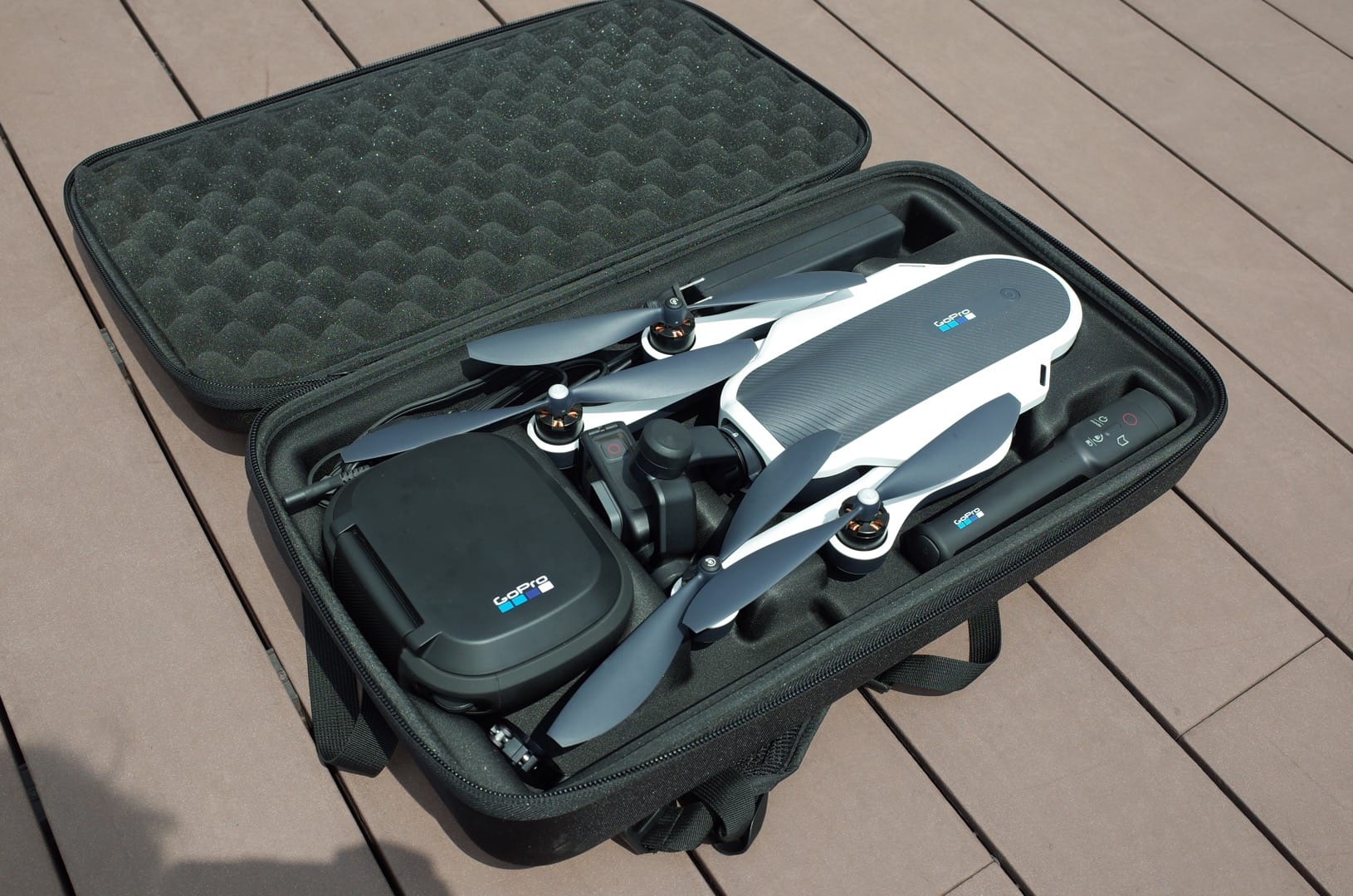 Karma สามารถติดตั้งกล้องได้ทั้ง HERO4, HERO5 black และ HERO5 Session โดยมีระบบ Takeoff และ landing อัตโนมัติด้วยปุ่มเดียวในรีโมทพกพาที่หน้าตาเหมือนจอยเกม ซึ่งมีโหมดฝึกบินให้ทดลองบังคับก่อนเอาโดรนขึ้นจริง แล้วถ้าใช้ในอเมริกายังมีแผนที่ในตัว สามารถระบุจุดห้ามบิน เพื่อไม่ให้โดรนบินเข้าไปได้อีกด้วย