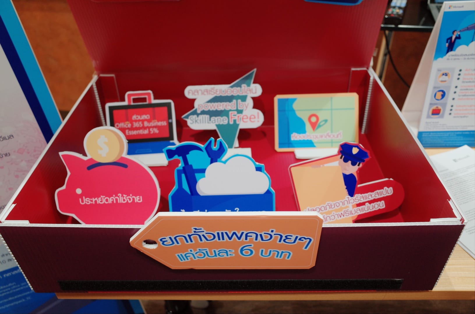 ในโอกาสนี้ นายธนพงษ์ได้ประกาศแคมเปญ “SMEs ไอทียกแพค” ที่นำเสนอพื้นที่บนคลาวด์ 1,000 GB อีเมลบริษัท และ ชื่อโดเมน (Domain Name) พร้อมข้อเสนอพิเศษอีกมากมาย เช่น คลาสเรียนลัด Microsoft Office Online by SkillLane ให้กับผู้ประกอบการ SME ทุกขนาด ตั้งแต่เริ่มต้นที่ราคาเพียง 6 บาทต่อวัน ตั้งแต่วันนี้จนถึง 26 ธันวาคม 2559 โดยผู้ประกอบการ 500 บริษัทแรกที่เข้าร่วมแคมเปญจะได้รับชื่อโดเมนฟรี นอกจากนี้ ผู้ประกอบการทุกรายที่เข้าร่วมแคมเปญยังจะได้รับส่วนลดพิเศษสำหรับการสั่งซื้อ Office 365 รุ่น Business Essentials สำหรับผู้ใช้จำนวน 3 คนขึ้นไปอีกด้วย โดยผู้สนใจสามารถติดต่อสอบถามข้อมูลเพิ่มเติมทางโทรศัพท์ได้ที่ 02 263 6888 หรือ หากสนใจโซลูชั่นอื่นๆหรือต้องการข้อมูลเพิ่มเติม สามารถติดต่อ บริษัทคู่ค้าของไมโครซอฟท์ หรือที่เว็บของไมโครซอฟท์