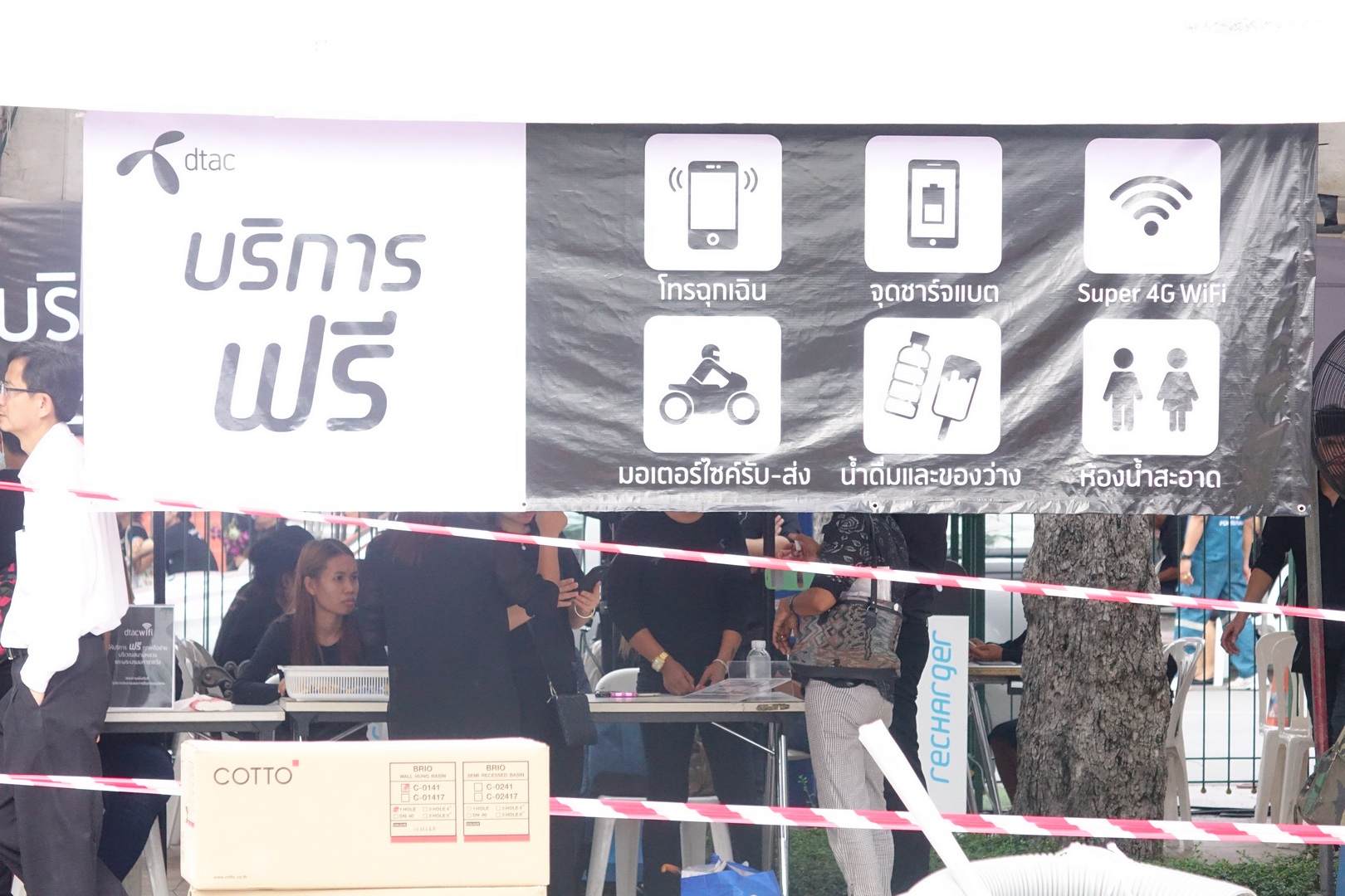 นอกเหนือจากการตั้งรถโมบาย, ติดตั้ง Cell Site และให้บริการ WiFi ฟรีแล้ว ทางดีแทคยังตั้งจุดอำนวยความสะดวกให้กับประชาชนที่มาร่วมพิธีถวายความอาลัย โดยตั้งจุดให้บริการชาร์จสมาร์ตโฟน และบริการโทรฟรี โดยไม่เสียค่าใช้จ่าย รวมถึงใครที่มีปัญหาการใช้งานสมาร์ตโฟน หรือต้องการสอบถามข้อมูลเพิ่มเติม ก็มีเจ้าหน้าที่จากดีแทคที่พร้อมให้บริการตลอดเวลาทำการ