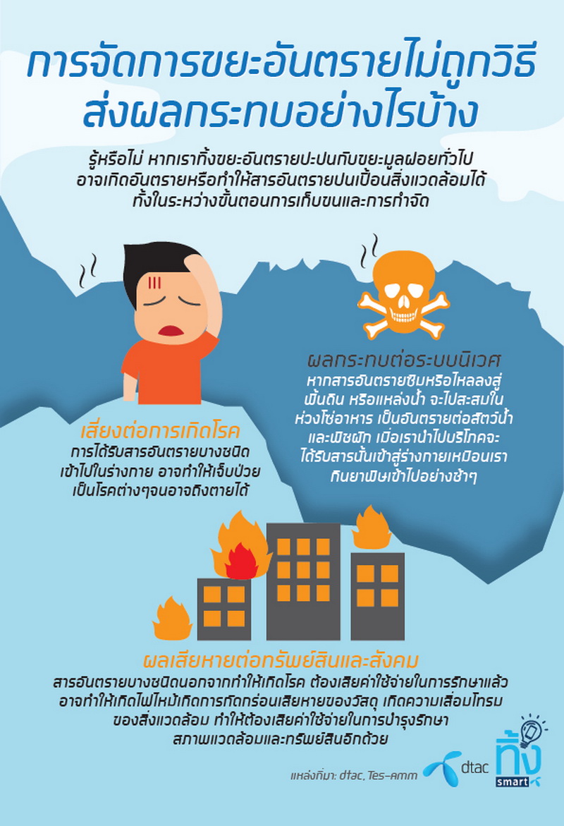 กระทรวงทรัพยากรธรรมชาติและสิ่งแวดล้อม ได้กำหนดโรดแมพเพื่อลดผลกระทบจากปัญหาการจัดการขยะมูลฝอยและของเสียอันตรายได้อย่างยั่งยืน ผลักดันให้ทุกหน่วยงานที่เกี่ยวข้องขับเคลื่อนการดำเนินงานตามแผนแม่บทบริหารจัดการขยะมูลฝอย (พ.ศ.2559 – 2564) พร้อมมุ่งส่งเสริมภาคเอกชนที่ดำเนินงานระบบเก็บรวบรวม ขนส่ง และกำจัดของเสียอันตราย โดยดีแทค เป็นผู้นำร่องเรื่องการรณรงค์ให้ผู้ใช้โทรศัพท์มือถือคัดแยกขยะ ไม่ทิ้งอุปกรณ์อิเล็กทรอนิกส์เสื่อมสภาพซึ่งถือเป็นของเสียอันตรายปนกับขยะทั่วไป เพื่อช่วยลดรอยเท้าคาร์บอน (Carbon Footprint) ซึ่งจะส่งผลให้เกิดมลพิษต่อระบบนิเวศและมนุษย์