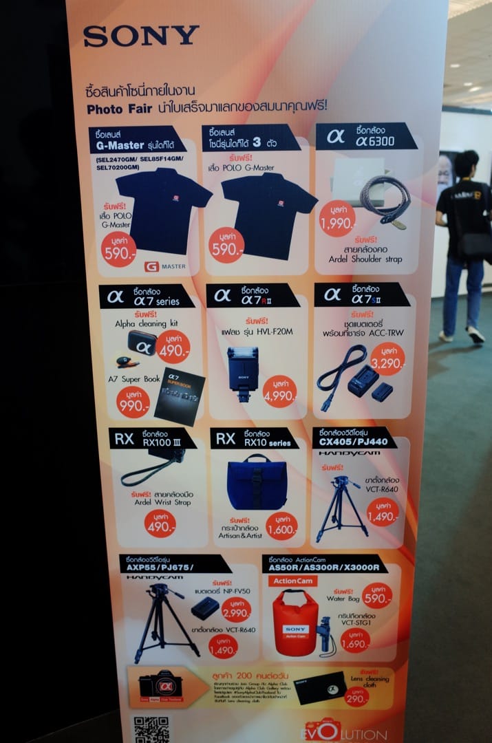 ภายในงาน Photo Fair ที่จัดขึ่นระหว่างวันที่ 30 พ.ย. – 4 ธ.ค. 2559 ณ BITEC บางนา โซนี่ได้เปิดตัวกล้อง DSLR ตัวท็อปกลุ่ม a-mount อย่าง a99 Mark 2 กล้องเรือธงกลุ่ม e-mount อย่าง a6500 และตัวท็อปของกล้องคอมแพกอย่าง RX100 Mark 5 เพื่อให้ผู้สนใจได้ลองสัมผัส และสั่งจองหรือเลือกซื้อได้ภายในงาน