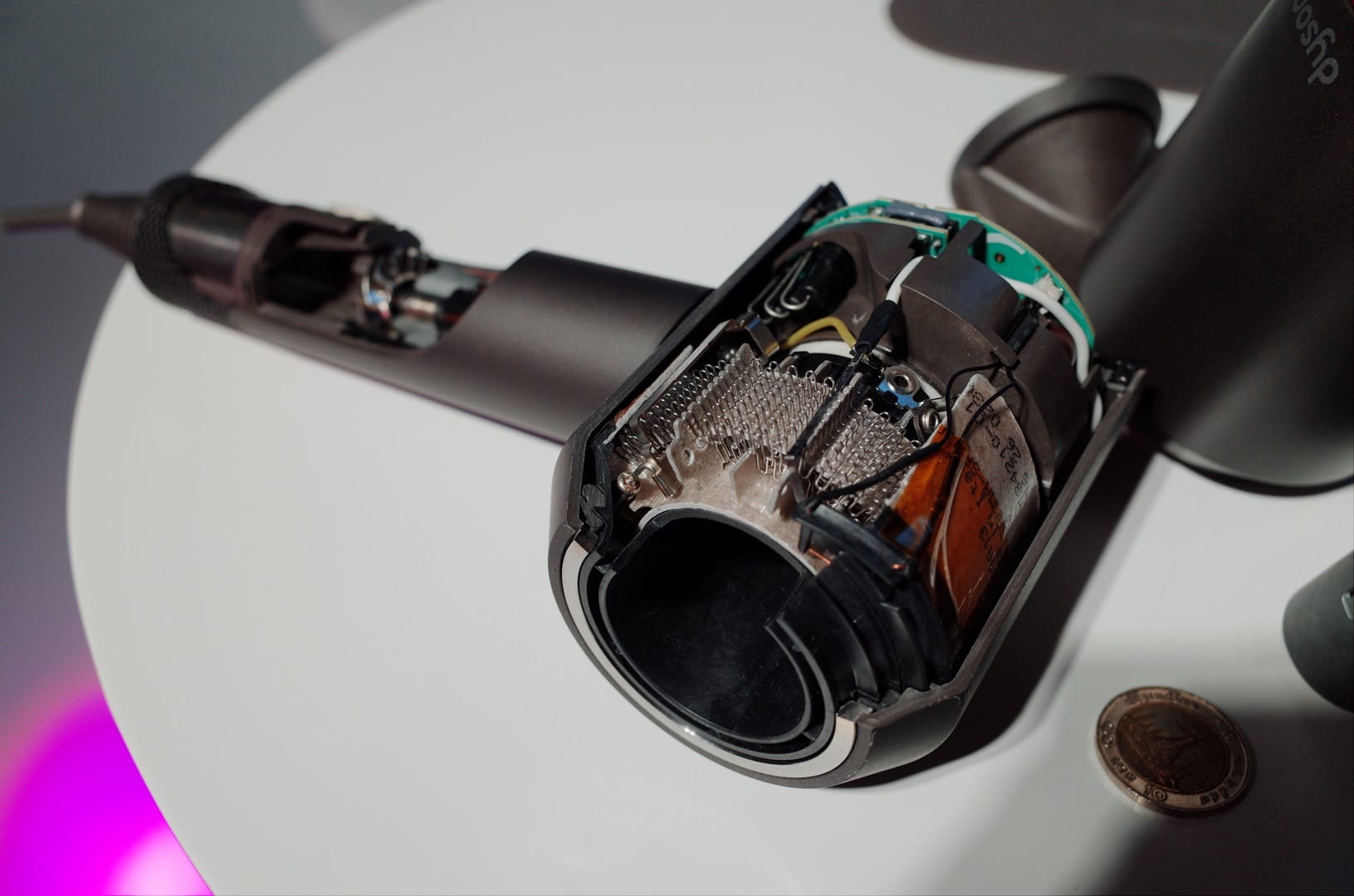 จุดเด่นของ Dyson Supersonic คือเปลี่ยนดีไซน์การออกแบบไดร์เป่าผมใหม่ทั้งหมด ทำให้ได้ไดร์ที่มีขนาดเล็ก น้ำหนักเบา เสียงเบา ตัวเครื่องเวลาทำงานไม่ร้อน แต่ให้ความแรงของลมและได้ความร้อนที่คงที่ครับ ด้วยดีไซน์ใหม่ของ Supersonic ทำให้ศูนย์ถ่วงของไดร์ดีขึ้น น้ำหนักไม่ยื่นออกไปจากตัวก้านมากนัก ทำให้ถือนานๆ ไม่เมื่อย (โดยเฉพาะช่างทำผมที่ต้องใช้ไดร์ทั้งวัน) นอกจากนี้การย้ายพัดลมดูดอากาศไปอยู่ที่ก้านก็ยังทำให้หมดปัญหาผมเข้าไปติดในไดร์เป่าผมสำหรับสาวๆ ที่ผมยาวๆ อีกด้วย