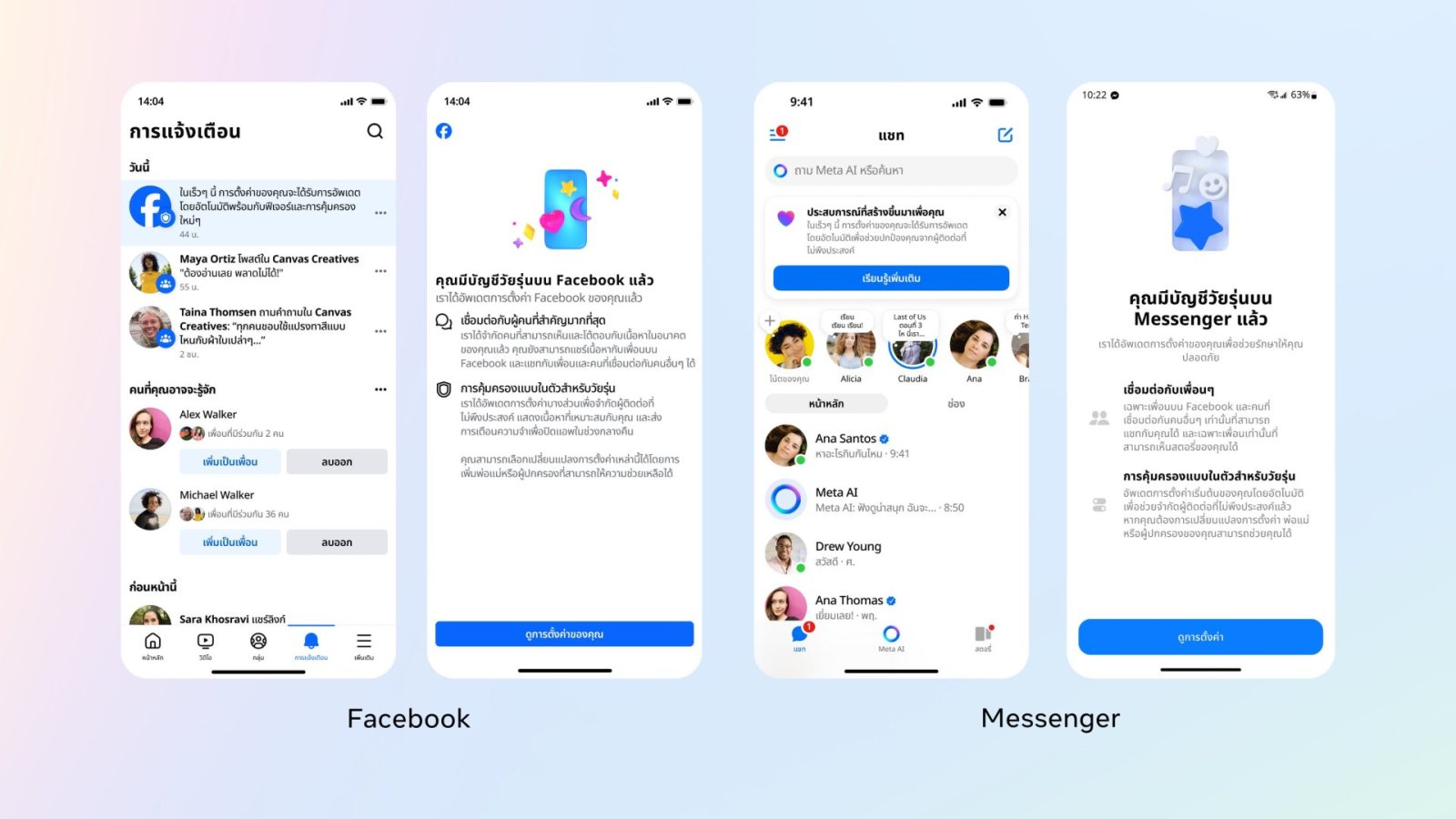 หลังจากเปิดตัวทั่วโลกบน Instagram ไปเมื่อปีก่อน ล่าสุดได้ขยายไปยัง Facebook และ Messenger ในประเทศไทยด้วย โดยสำหรับบัญชีสำหรับเยาวชน (Teen Account) ก็มีการตั้งค่าดังต่อนี้