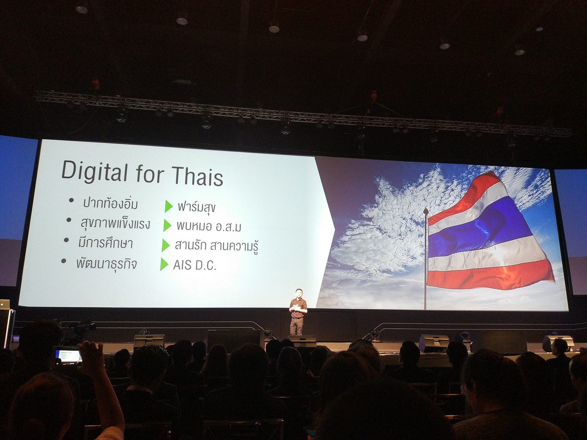 ประกาศแนวคิด AIS Digital For Thais นำเทคโนโลยีดิจิทัลไปสนับสนุนความแข็งแกร่ง สร้างโอกาสใหม่ๆ แก่กลุ่มรากฐานหลักของประเทศ ประกอบด้วย เกษตรกรรมและผู้ประกอบการ OTOP, สาธารณสุข , การศึกษา และ Digital Start Up
