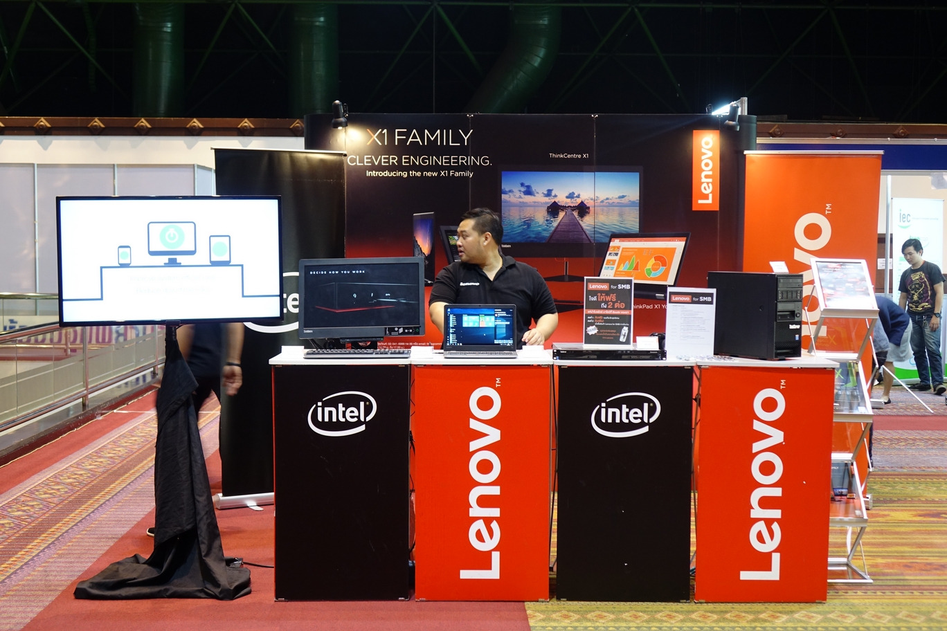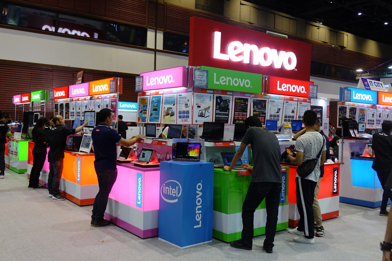 เลอโนโวขนทัพทั้งตระกูล Idea, ตระกูล Think, ตระกูล Yoga และน้องใหม่ที่เปิดตัวในไทยเมื่อไม่นานมานี้อย่าง Legion มาจัดโชว์และจำหน่าย