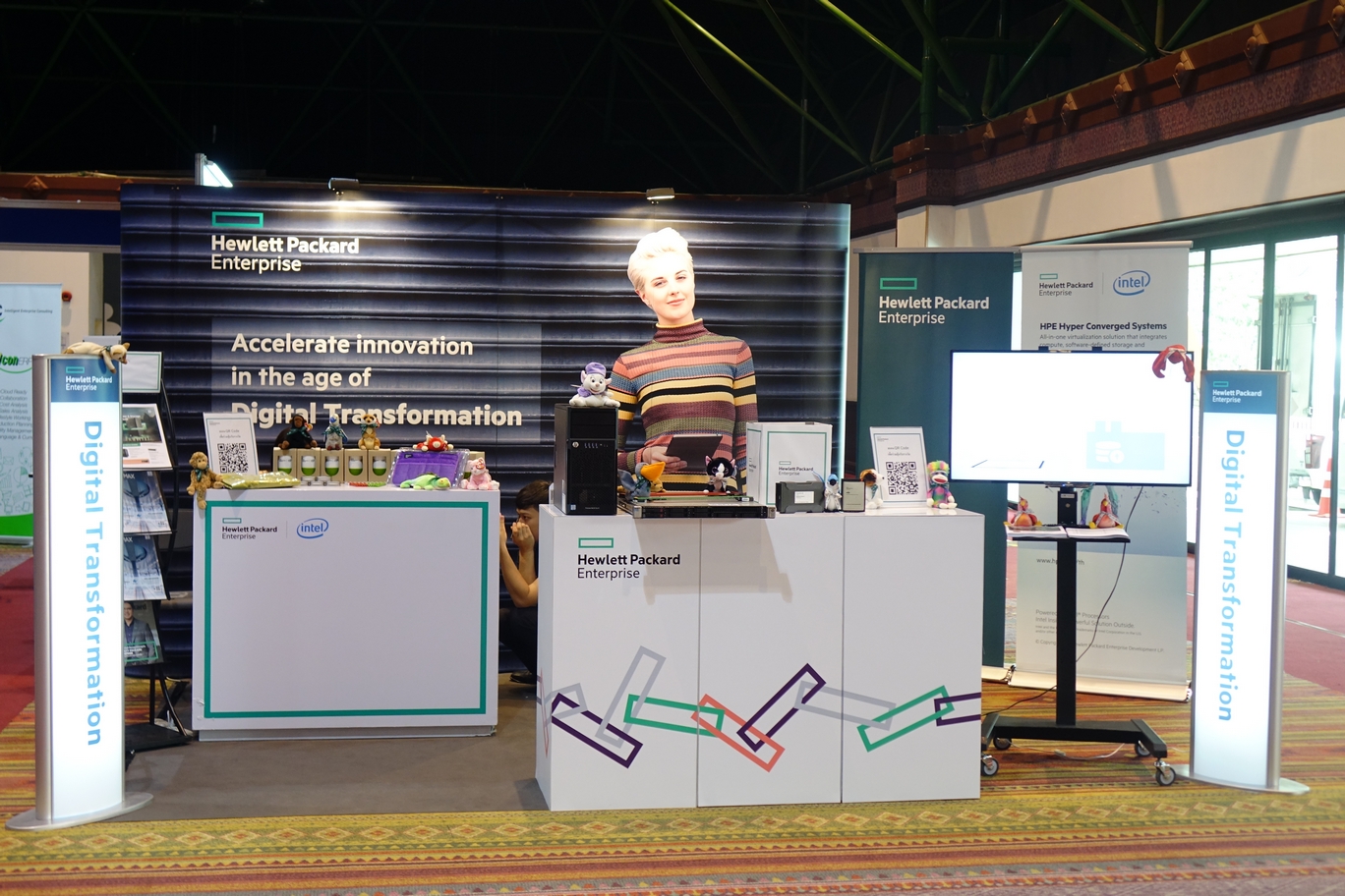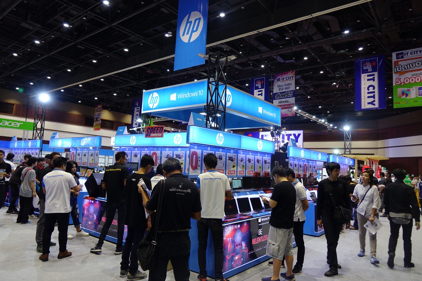 แบรนด์ HP บูธสีฟ้าสดใส นำแล็บท็อป และพีซี ทั้งสายใช้งานทั่วไป และสายเกมเมอร์อย่างตระกูล Omen รวมถึงน้องใหม่อย่าง HP Z2 Mini พีซีตระกูล Workstation ไซส์เล็ก สำหรับงาน CAD มาจัดแสดงและจำหน่าย
