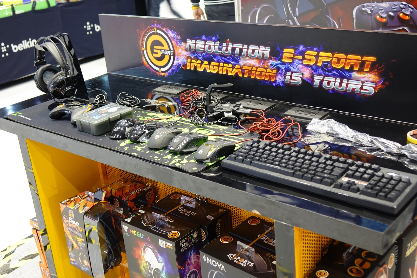 ถึงบูธจะเล็ก แต่ของที่ขนมาจำหน่ายก็จัดเต็ม โดยเฉพาะเกมมิ่งเกียร์จากยี่ห้อดังๆ อย่าง Razer และ Neolution ก็มาจำหน่ายในบูธนี้