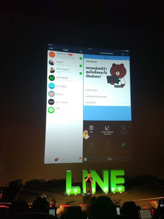 ซึ่งปัจจุบันทุก ๆ คนต่างก็ใช้มือถือเป็นส่วนหนึ่งในชีวิตประจำวันกันไปแล้ว และแอปแรก ๆ ที่เราโหลดนั้นก็คงไม่พ้นแอปฯ แชทเจ้าประจำอย่าง LINE ซึ่งทางคุณอริยะ พนมยงค์ กรรมการผู้จัดการ LINE ประเทศไทย กล่าวไว้ว่า ประเทศไทยเป็นประเทศที่มีความสำคัญมาก ๆ สำหรับ LINE ซึ่งทั่วโลกมีผู้ใช้งานทั้งสิ้นกว่า 216 ล้านคน และประเทศไทนก็เป็นอันดับ 2 ของจำนวนผู้ใช้งานทั้งหมด และปัจจุบันก็มี Mascot ต่าง ๆ ออกมามากมาย ซึ่งในงานนี้เขาก็ได้พามาทั้งหมด 4 ตัวคือ Cony, Brown, Choco และ Pangyo ซึ่งเป็นแพนด้า Mascot ตัวล่าสุดนั่นเอง