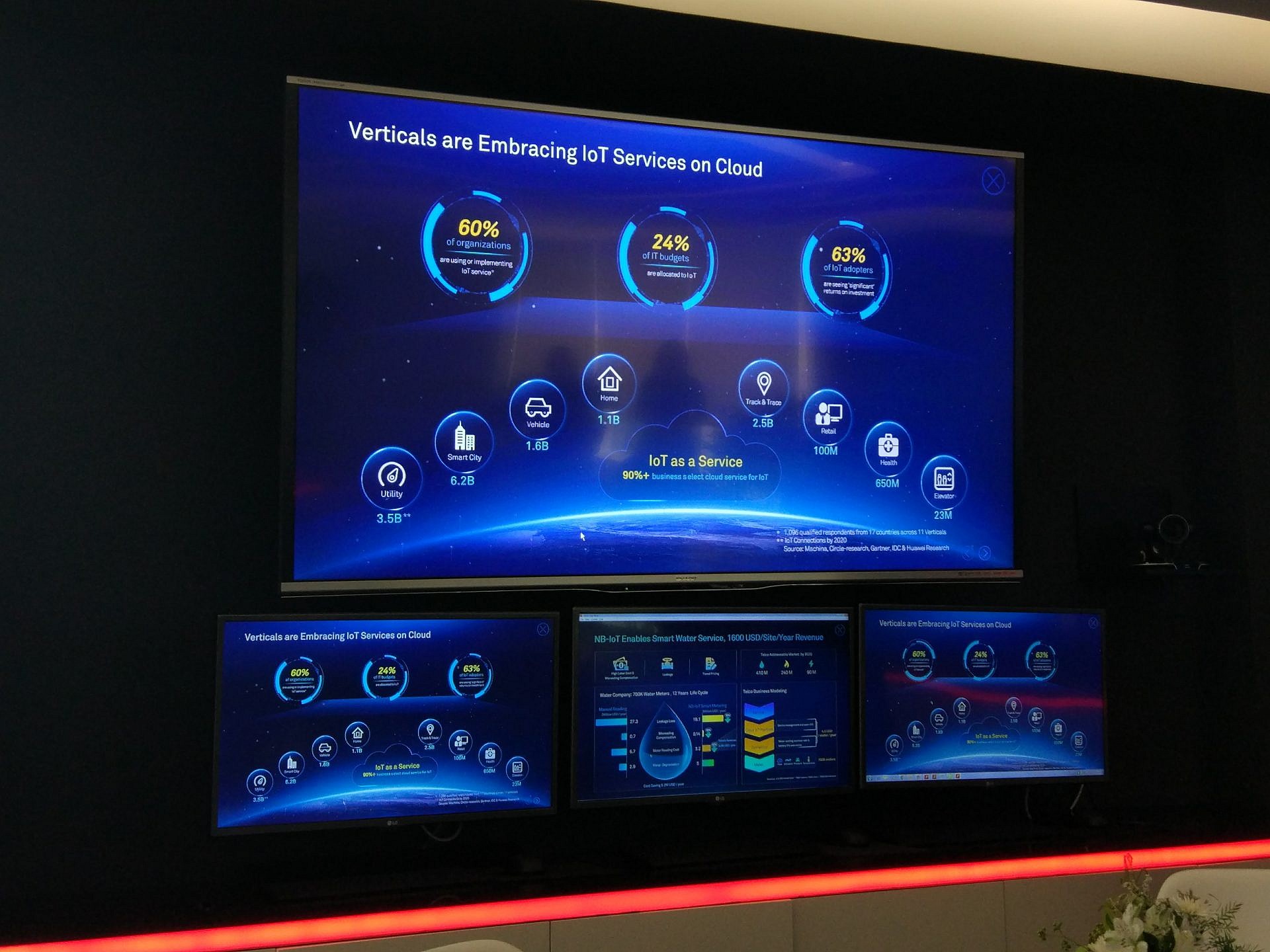 ส่วนแรกคือ IoT หรือ internet of things ซึ่งปัจจุบันเริ่มมีการ implement หรือนำมาใช้งานมากขึ้นเรื่อย ๆ แล้วกว่า 60% โดยแบ่งออกเป็นหลายหมวดหมู่ด้วยกันตั้งแต่ Utility หรืออุปกรณ์ใช้งานภายในบ้าน Smart City รถยนต์ บ้าน รวมไปถึงอุปกรณ์การตรวจจับความเคลื่อนไหว ร้านค้า สุขภาพ หรือแม้แต่ในส่วนของลิฟท์ ก็จะมีอุปกรณ์ IoT ขึ้นมา