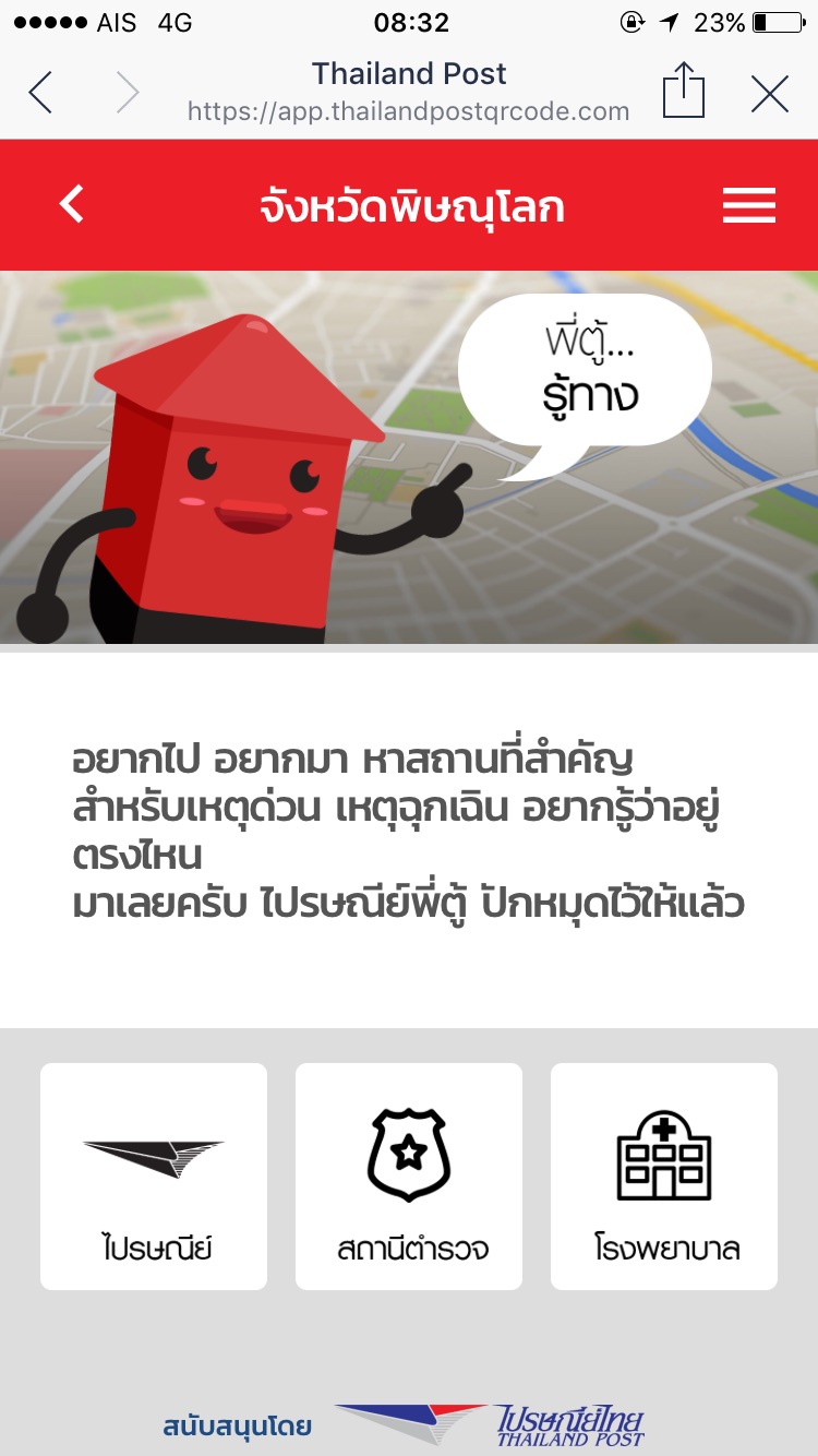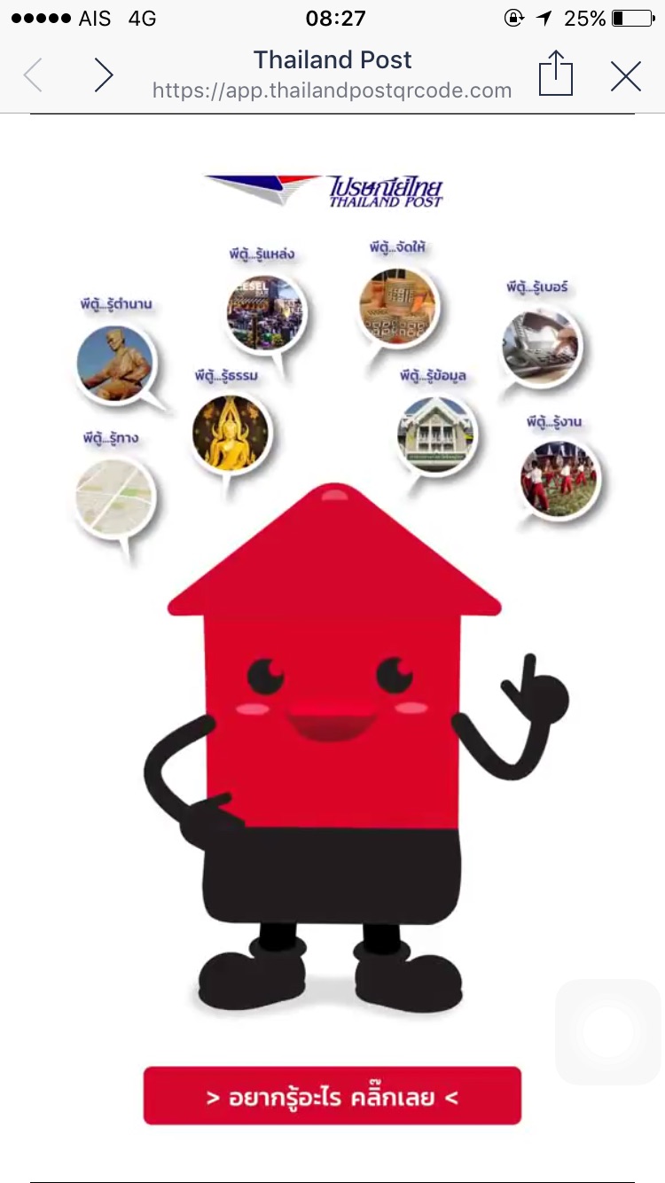 พลเอกสาธิต พิธรัตน์ ประธานกรรมการ บริษัท ไปรษณีย์ไทย จำกัด (ปณท) กล่าวว่า ตอนนี้มีโครงการปรับปรุงตู้ไปรษณีย์เพื่อบริการประชาชนด้วยคิวอาร์โค้ด ภายใต้ชื่อ “พี่ตู้รู้ทุกเรื่อง” นวัตกรรมตู้ไปรษณีย์อัจฉริยะยุค 4.0 ที่เปลี่ยนตู้ไปรษณีย์ธรรมดาให้สามารถให้ข้อมูลสถานที่ท่องเที่ยวต่างๆ ในพื้นที่ใกล้เคียงได้เพียงสแกนคิวอาร์โค้ด ก็จะเข้าหน้าเว็บพิเศษเพื่อดูข้อมูลภายในจังหวัด เพื่อเป็นการส่งเสริมสถานที่ท่องเที่ยว และผู้ประกอบการรายย่อยในชุมชน นอกจากนี้ที่ตู้ยังมีพอร์ต USB สำหรับชาร์จอุปกรณ์ด้วย