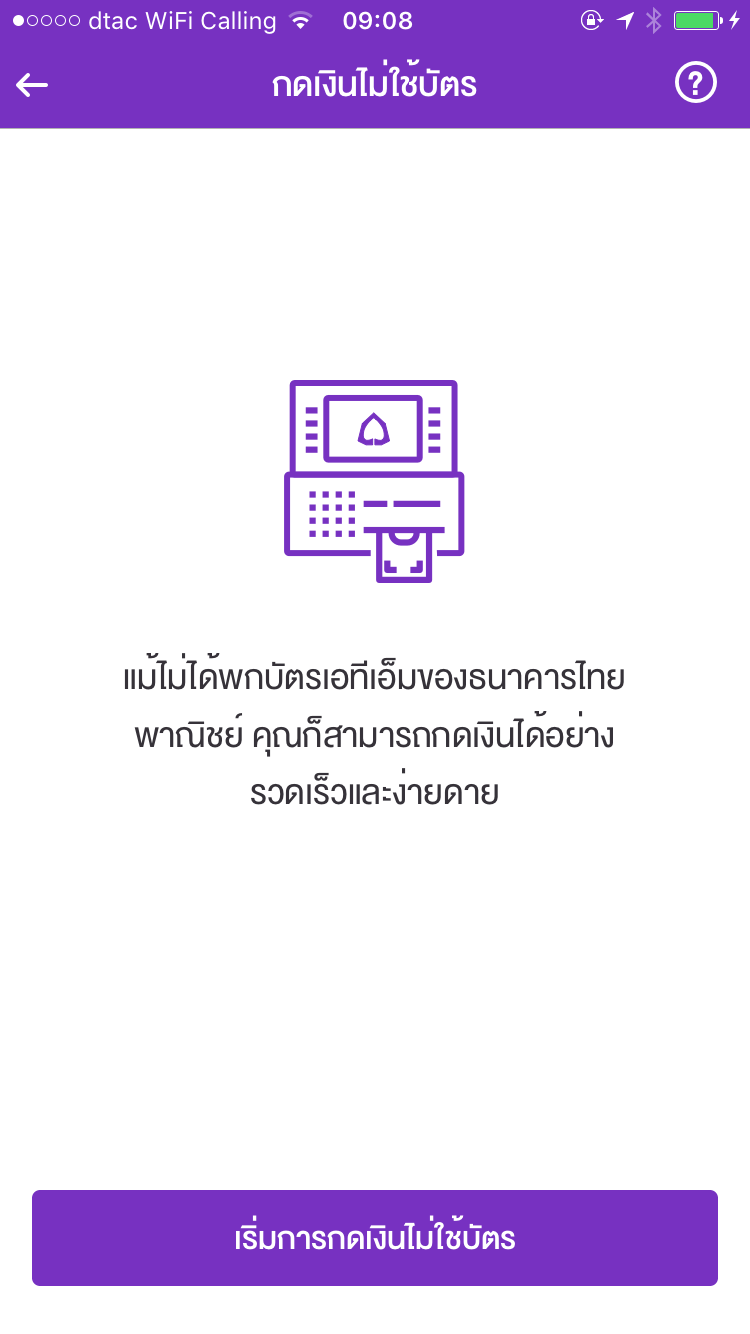 การทำงานของฟังก์ชั่นกดเงินไม่ใช้บัตร คือผู้ใช้จะต้องกดปุ่ม “กดเงินไม่ใช้บัตร” ภายในแอป ป้อนจำนวนเงินที่ต้องการ แล้วตัวแอปจะให้รหัส 6 หลักมาเพื่อนำไปป้อนที่ตู้ ATM ของธนาคารไทยพาณิชย์ร่วมกับเบอร์โทรศัพท์ของเราภายใน 15 นาทีหลังจากได้รหัส 6 หลัก ก็จะได้เงินสดจากตู้ตามที่ระบุในแอป