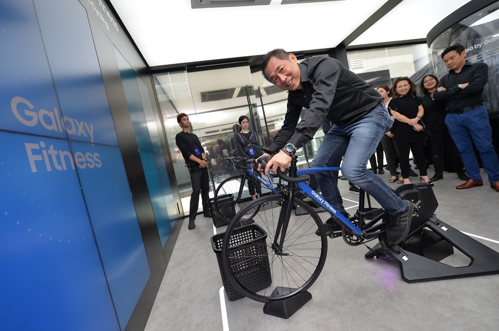- Galaxy Fitness ท้าพิสูจน์ความฟิตของร่างกายคุณด้วยกิจกรรมปั่นจักรยานขณะสวม เกียร์ ฟิต 2 โปร เพื่อวัดอัตราการเต้นของหัวใจรวมถึงยังแสดงจำนวนแคลเลอรี่ที่สามารถเผาผลาญได้แบบเรียลไทม์