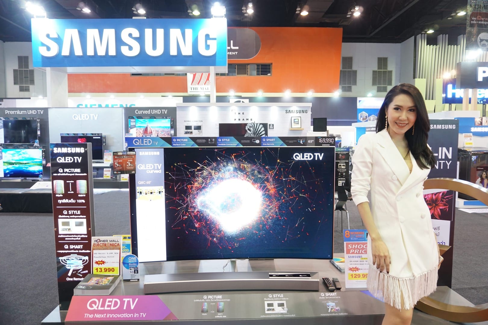แน่นอนแหละว่ากลุ่มท็อปคือ Samsung QLED UHD TV ทีวีที่ใช้เทคโนโลยี Quantum Dot ซึ่งตอนนี้มีซัมซุงเจ้าเดียวที่ทำขาย ก็ให้สีสดที่สุดในบรรดาเทคโนโลยีทีวีตอนนี้แล้ว รุ่นที่น่าสนใจงานในงาน Power Mall Electronica คือ Samsung QA-65Q8 จอ QLED 4K แบบโค้งขนาด 65 นิ้ว ลดราคาจาก 169,990 เหลือ 129,990 บาท
