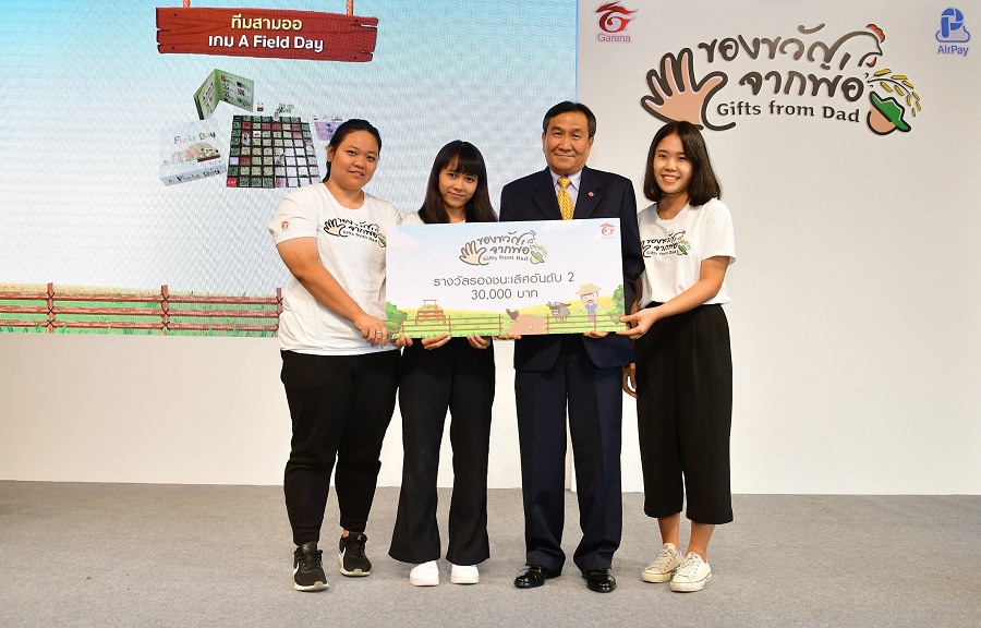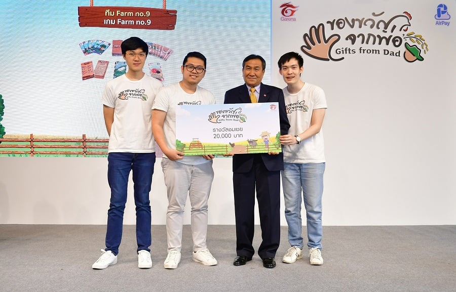 “สำหรับผลงานของทีมชนะเลิศ จะได้รับการผลิตเป็น Box Set ส่งต่อไปยังโรงเรียนต่าง ๆ สำหรับเป็นสื่อการเรียนการสอน และส่งต่อความรู้ที่ได้จากโครงการพระราชดำริหลายๆโครงการ อันเป็นของขวัญจากพ่อให้กับคนรุ่นใหม่ และจะเปิดให้ดาวน์โหลดเกมทั้ง 4 เกมนี้ได้ที่ www.garena.co.th/giftsfromdad โดยผู้สนใจสามารถดาวน์โหลดได้ฟรี เพื่อเป็นการส่งมอบประสบการณ์ ความรู้ พร้อมกับจุดประกายความสนใจของคนรุ่นใหม่บนโลกออนไลน์เพิ่มขึ้นอีกด้วย”