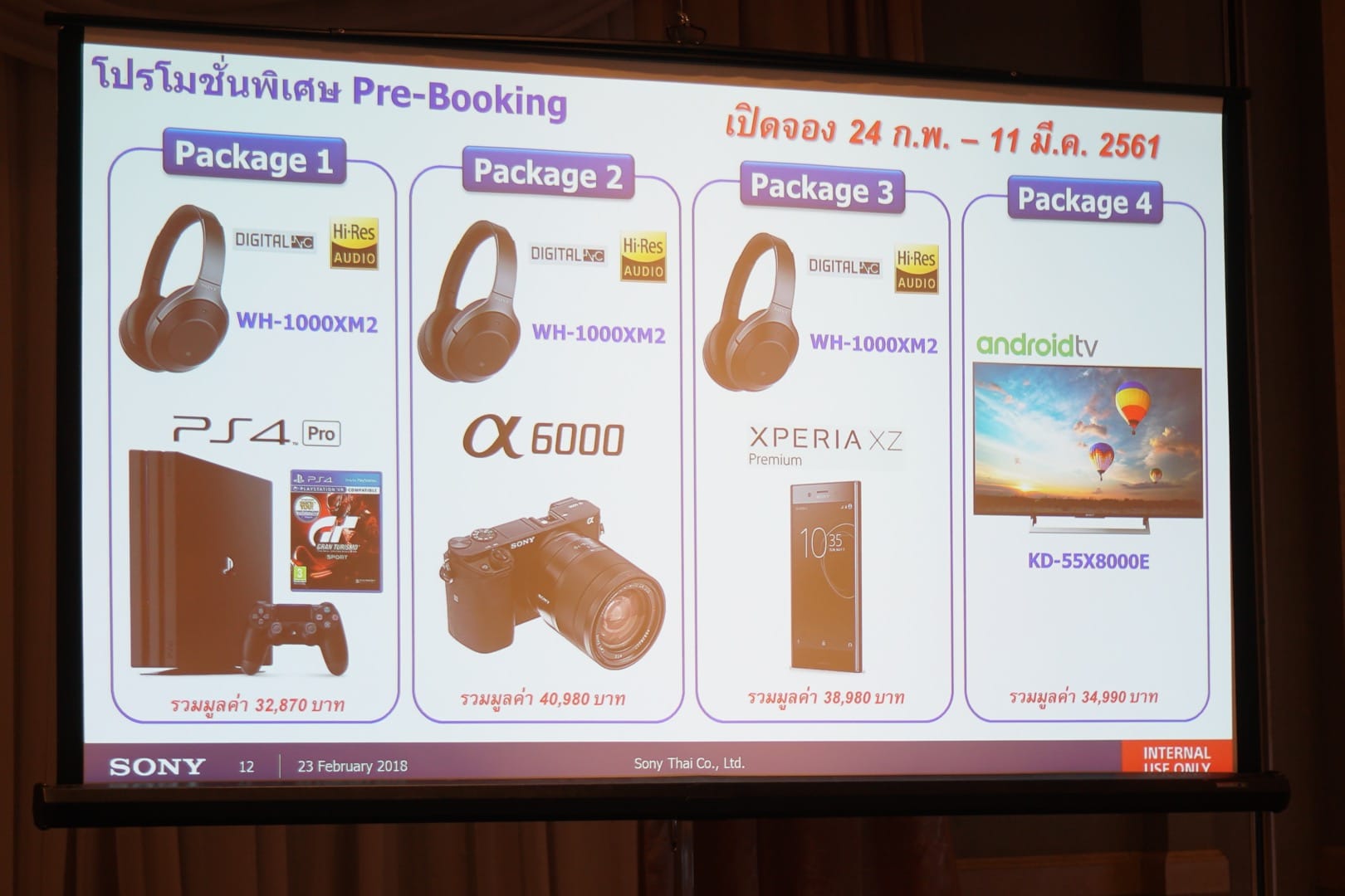 Sony Bravia KD-77A1 เปิดจองล่วงหน้าตั้งแต่วันที่ 24 กุมภาพันธ์ถึง 11 มีนาคมในราคา 499,990 บาท และวางขนาดจริงในช่วงเดือนมีนาคม 2561 โดยผู้สั่งจองล่วงหน้าสามารถเลือกรับของแถมได้ 1 ใน 4 ชุดนี้คือ
