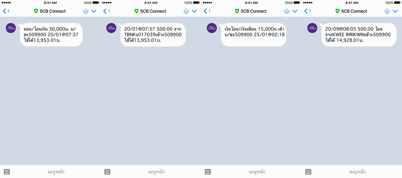 มาดูตัวอย่างการแจ้งเตือนผ่านไลน์ของ SCB Connect ตามหน้าจอด้านล่างเลย