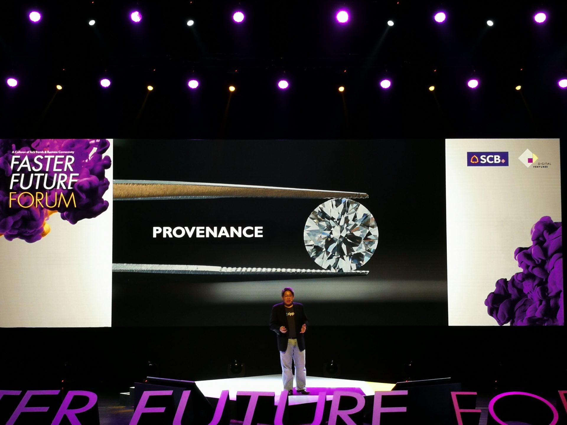คุณพลภัทร อัครปรีดี กรรมการผู้จัดการ หน่วยงานทุนองค์กร บริษัท ดิจิทัล เวนเจอร์ส จำกัด กล่าวว่า “งานสัมมนา ‘Faster Future Forum 2018’ ครั้งนี้มุ่งให้ความรู้และแง่คิดต่าง ๆ เกี่ยวกับบล็อกเชนในภาพที่ทำให้เห็นว่าเทคโนโลยีนี้ไม่ได้จะปฏิวัติเพียงแค่โลกการเงินเท่านั้น แต่สามารถปฏิวัติโลกธุรกิจทั้งหมด พร้อมนำเสนอกรณีศึกษาจากภาคธุรกิจต่าง ๆ ทั่วโลก”