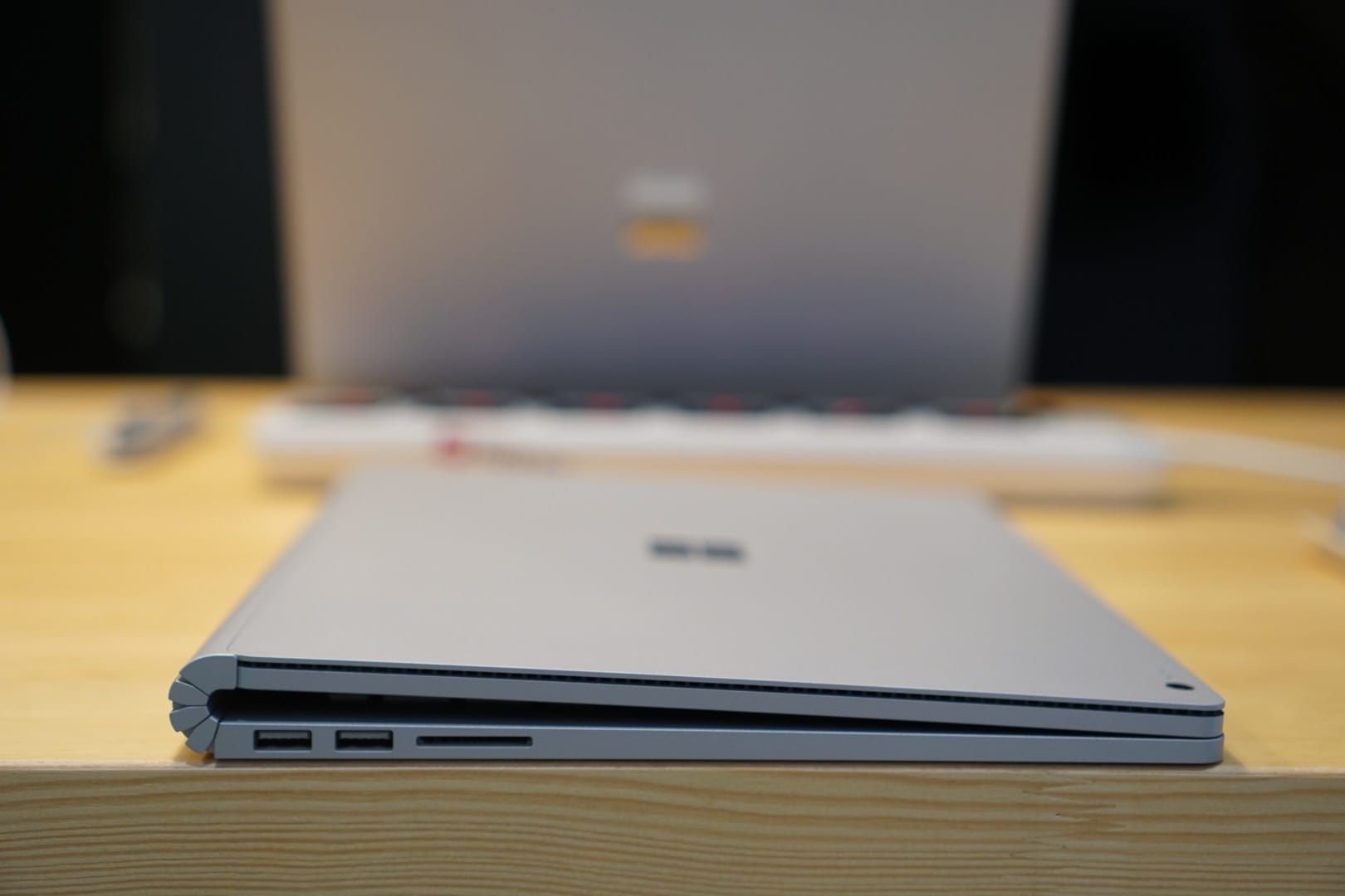 Surface Book 2 มีความน่าสนใจอีกหลายอย่างตั้งแต่อแดปเตอร์ที่สามารถชาร์จไฟเข้าเครื่องได้ทั้งแบบผ่านฐานคีย์บอร์ดตามปกติหรือจะต่อตรงเข้าตัวเครื่องเลยก็ได้ ซึ่งอแดปเตอร์ชาร์จไฟรุ่นนี้สามารถใช้ได้กับ Surface Laptop และ Surface Pro ด้วย และที่ตัวอแดปเตอร์ยังมีช่อง USB สำหรับชาร์จอุปกรณ์อื่นๆ ได้ด้วย นอกจากนี้ Surface Book 2 ยังต่อภาพออกจอภายนอกด้วยพอร์ต USB-C (รุ่นเดิมจะต่อผ่าน Mini Display Port) ทำให้หาซื้อหัวแปลงเป็น HDMI, VGA ได้ไม่ยากนัก