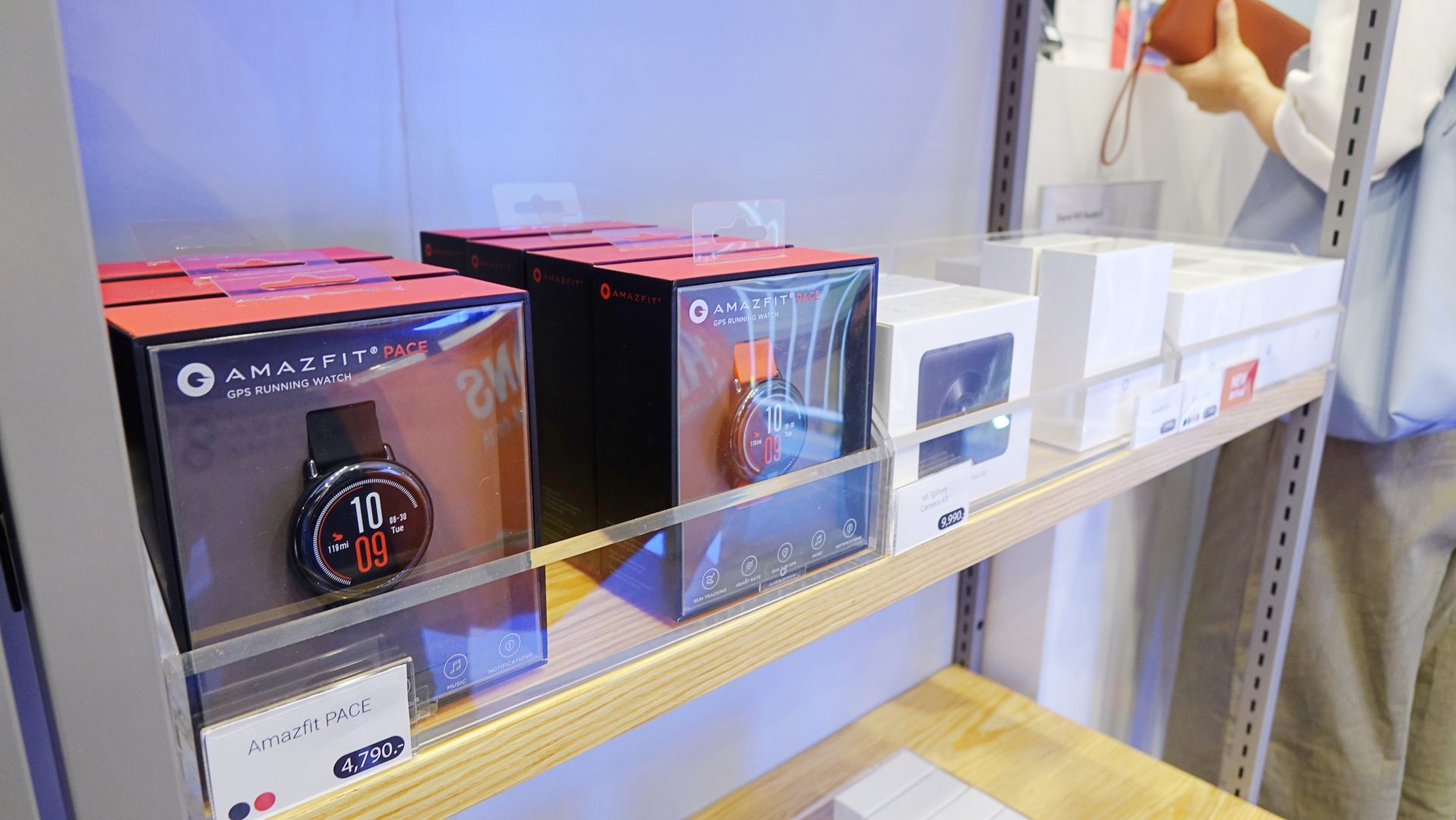 ส่วนด้านขวาสุดจะเป็นโซน Gadget มีลำโพงแบบต่าง ๆ กล้องติดรถ แปรงสีฟันไฟฟ้า เครื่องวัดอุณหภูมิ หูฟัง และของที่คนจับเยอะที่สุดคือ แว่นตา ที่ออกแบบมาให้ใส่แล้วดูสมาร์ทสไตล์เสียวหมี่มาก ๆ