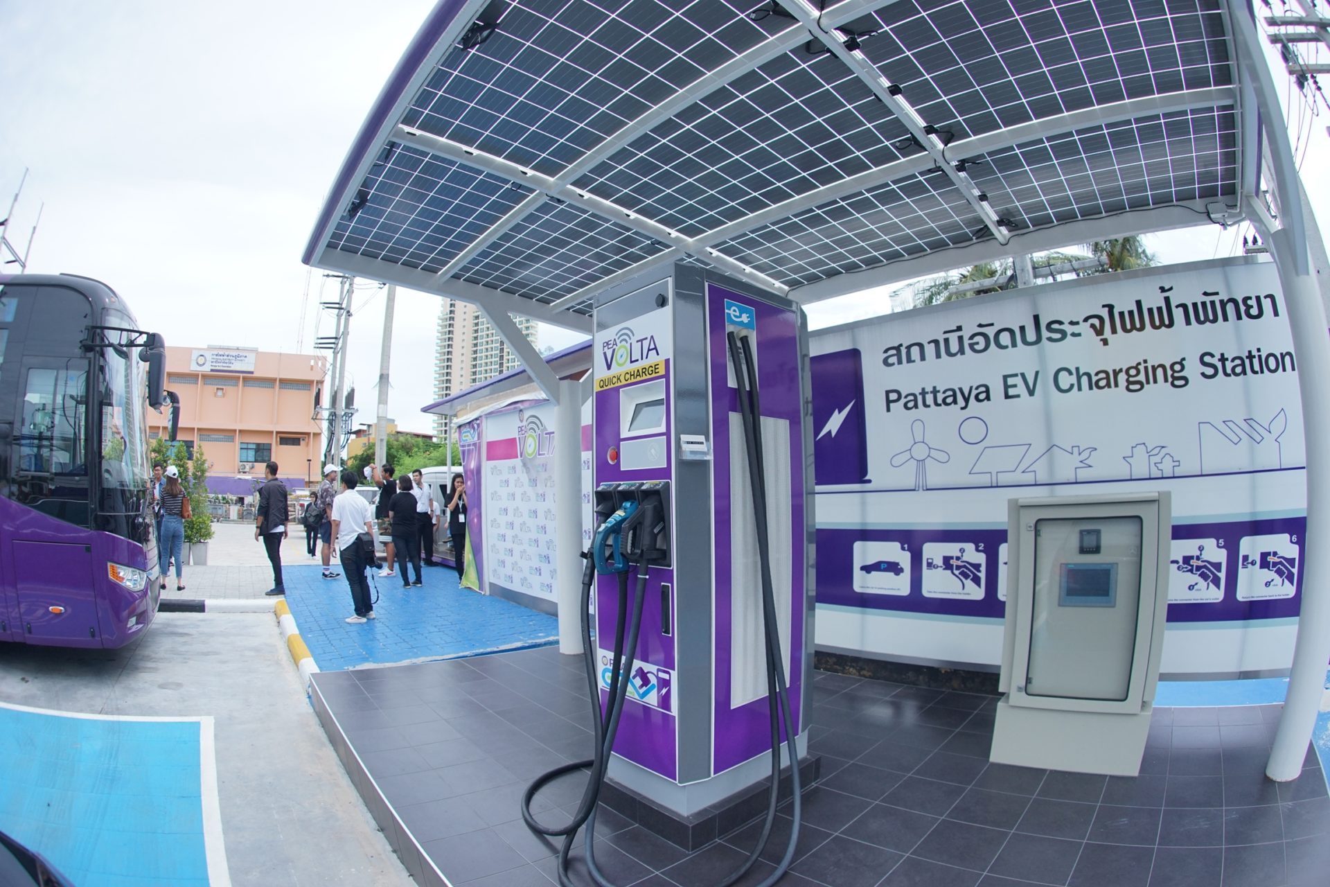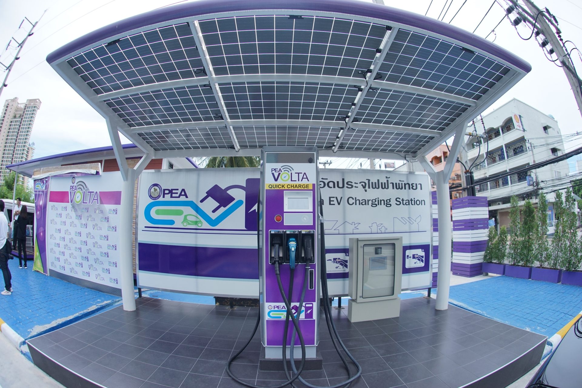 นายคณิต ชัยวัฒนา รองผู้อำนวยการกองบริหารกองทุนวิจัยและนวัตกรรม การไฟฟ้าส่วนภูมิภาค กล่าวว่า ทางกฝภ. เล็งเห็นว่าในอนาคตเนี่ย จะมีการประกอบรถยนต์สันดาปกันน้อยลง และคนจะหันไปใช้รถยนต์พลังงานไฟฟ้ามากขึ้น กฟภ.จึงจัดตั้งสถานีชาร์จไฟฟ้าขึ้น หวังให้มีในทุกจังหวัดทั่วประเทศ ซึ่งตอนนี้ที่มีติดตั้งอยู่เป็นช่วงทดลองใช้ฟรี มีของกฟภ. เองทั้งหมด 11 แห่ง ของโครงข่ายโวลต้า 3 แห่ง และอยู่ระหว่างดำเนินการอีก 3 แห่ง