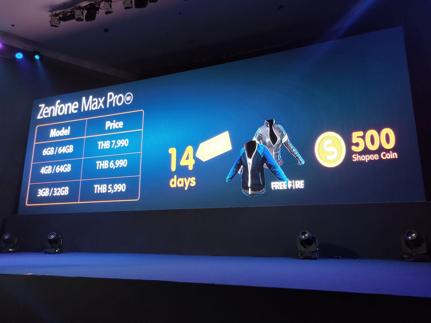 พร้อมตอกย้ำความเป็นสมาร์ทโฟนสายเกมเมอร์ ทั้งนี้ ทางเอซุสยังประกาศความเป็นพันธมิตรอย่างเป็นทางการกับเกมส์ Free Fire จากบริษัท Garena Thailand ด้วยการมอบไอเท็มพิเศษแก่ลูกค้าและโปรโมทสินค้า ZenFone Max Pro ในเกมส์