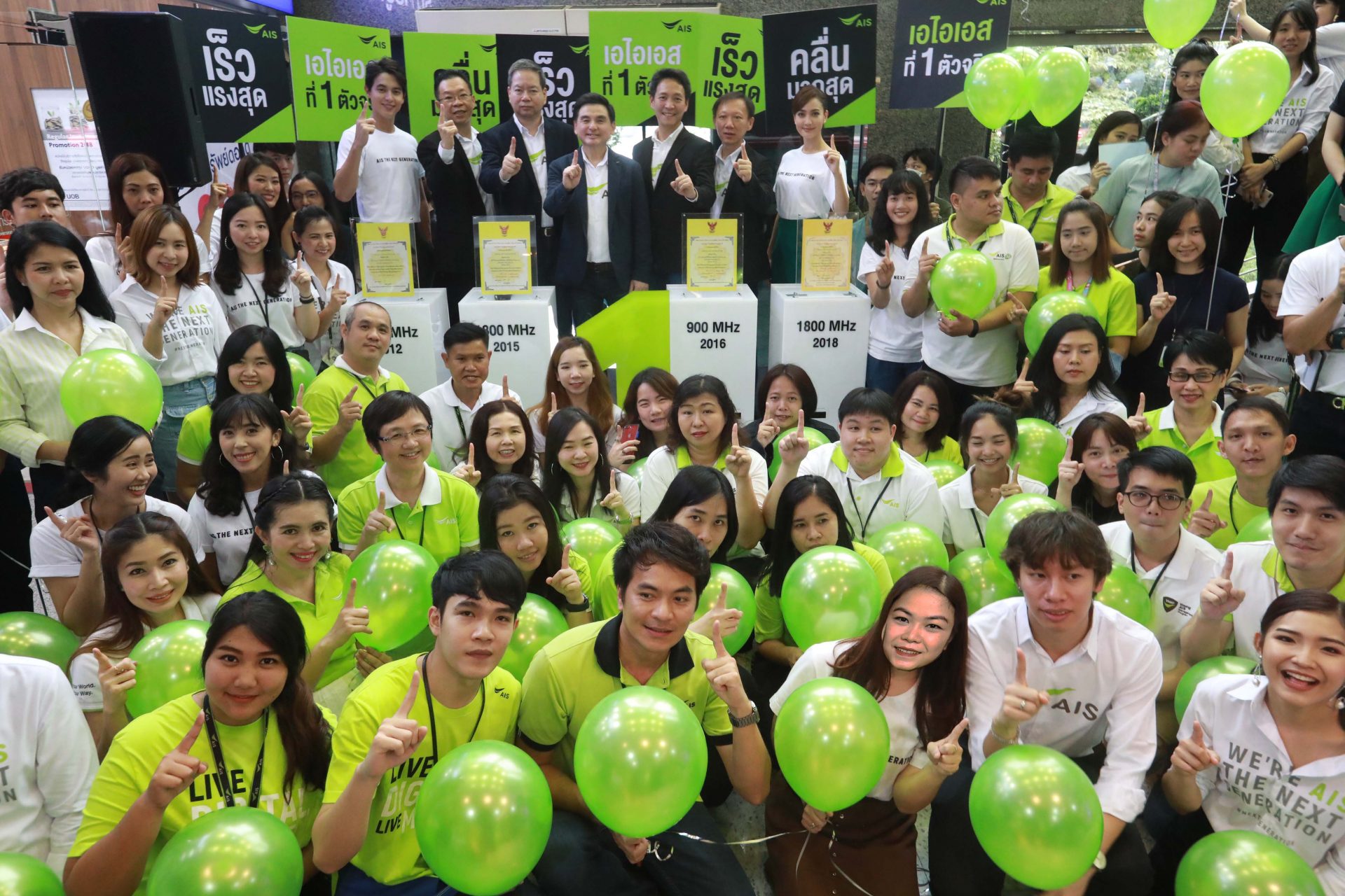 เมื่อวันที่ 24 กันยายน 2561 ที่ผ่านมา AIS โดยคณะผู้บริหารพร้อมพนักงาน และคุณแต้ว-ณฐพร และ เจมส์-จิรายุ พรีเซนเตอร์ของเอไอเอส ได้เข้ารับใบอนุญาตคลื่นความถี่ 1800 MHz อย่างเป็นทางการจาก กสทช. พร้อมตอกย้ำที่ 1 ตัวจริงที่มีคลื่นความถี่ถือครองมากที่สุดในอุตสาหกรรมโทรคมนาคม และประกาศเปิดให้บริการบนคลื่น 1800 MHz ที่กว้างที่สุด “Super Block” ในวันที่ 28 ก.ย.นี้ เผยลูกค้าเตรียมสัมผัสประสบการณ์ความเร็วอินเทอร์เน็ตเพิ่มขึ้น