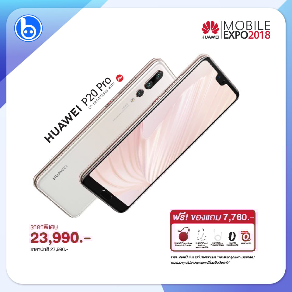 ซึ่ง Huawei P20 Pro ทุกสีลดราคาจาก 27,990 บาท เหลือ 23,990 บาท พร้อมของแถมเพียบมูลค่ารวม 7,760 บาทคือ
