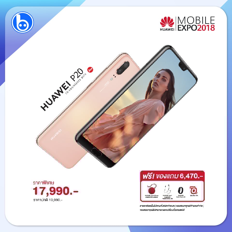 ในส่วนของ Huawei P20 ก็ไม่น้อยหน้าครับ ลดราคาจาก 19,990 บาทเหลือ 17,990 บาท พร้อมรับของแถมมูลค่า 6,470 บาทไปเลย คือ