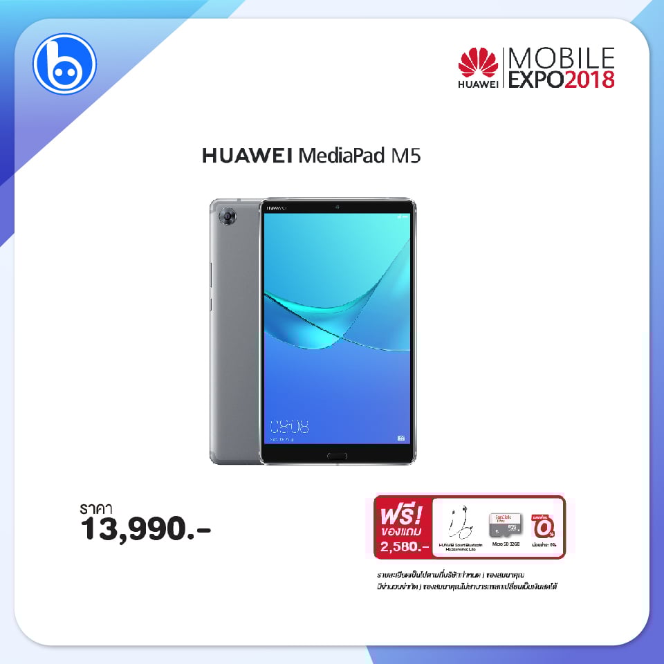 รุ่นน้อง Huawei MediaPad M5 เน้นใช้งานอ่านหนังสือ ดูหนัง ฟังเพลง เล่นเกม ก็มาในราคา 13,990 บาท ก็ได้รับของแถมมูลค่า 2,580 บาท จ้า