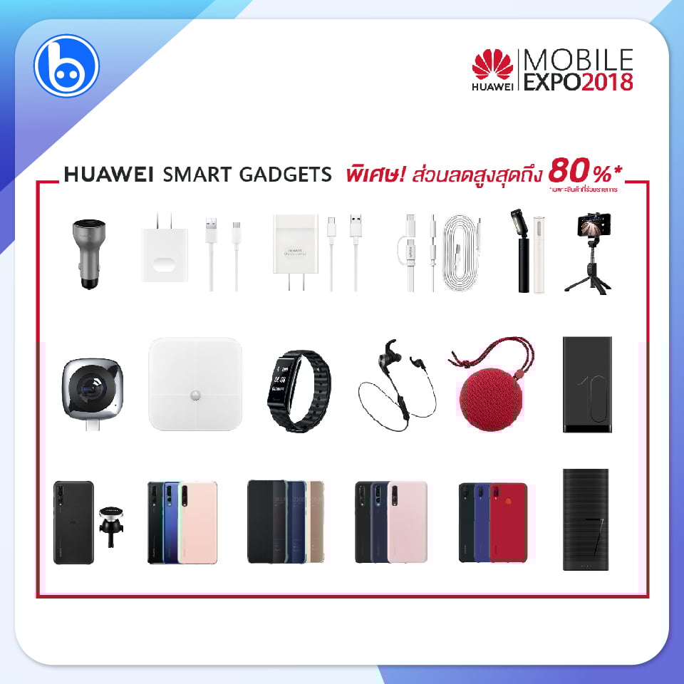 นอกจากนี้ยังพบกับขบวน HUAWEI Smart Gadgets ที่ให้ส่วนลดพิเศษสูงสุดถึง 80% ไม่ว่าจะเป็น กล้อง HUAWEI EnVizion 360 Camera, HUAWEI Body Fat Scale, อะแดปเตอร์, ขาตั้งกล้อง, ไม้เซลฟี่, หูฟัง, ลำโพง, พาวเวอร์แบงค์ หรือเคสโทรศัพท์หลากหลายรุ่น
