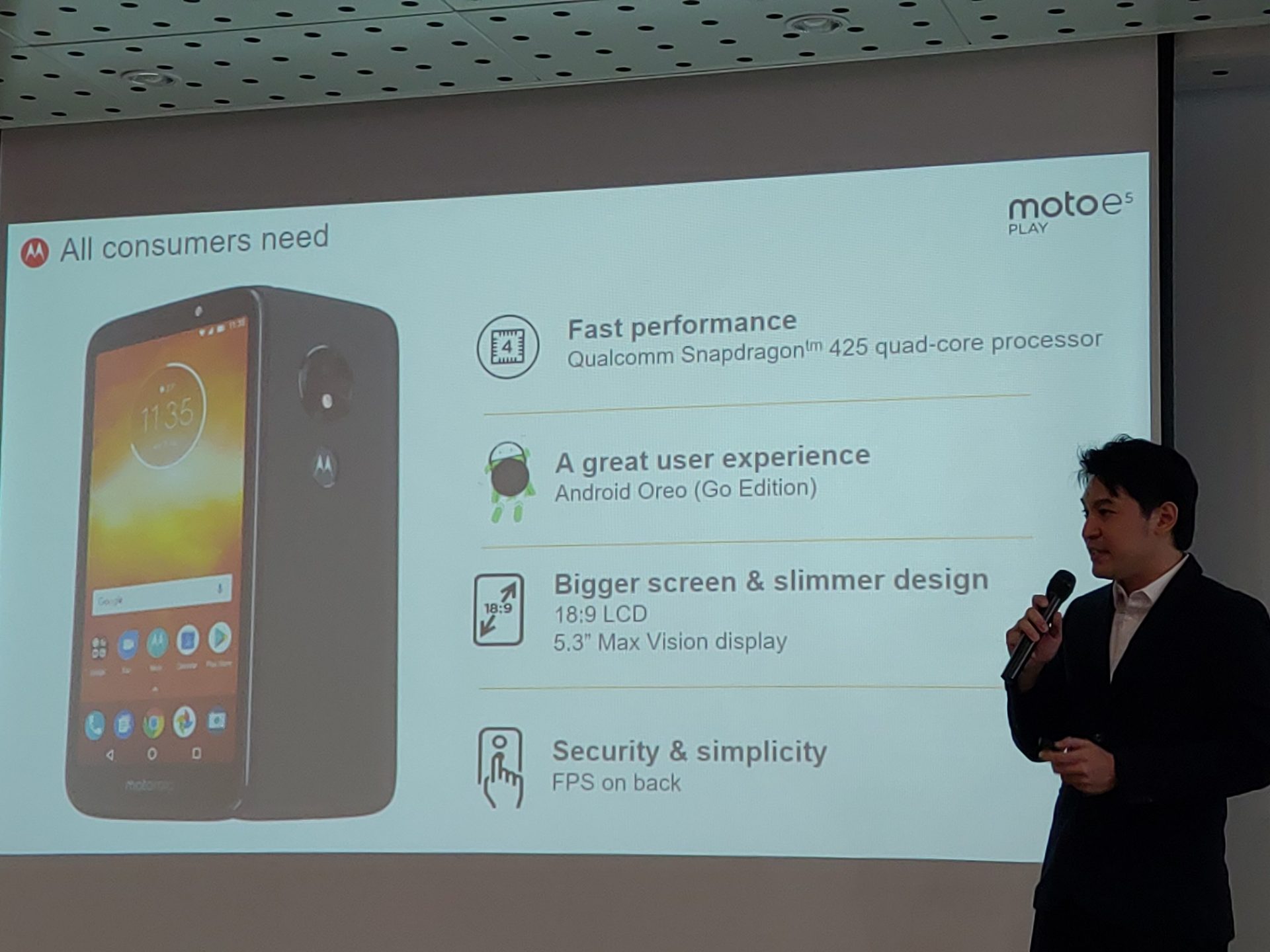 โมโตโรล่า เปิดตัวมือถือรุ่นใหม่ล่าสุดเอาใจคนงบน้อย moto e5 play Android Go Edition ซึ่งเป็นมือถือที่มาพร้อมกับระบบปฎิบัติการ Android Go Oreo Edition ที่ทำให้มือถือสเปคระดับล่าง สามารถใช้งานได้อย่างลื่นไหล ไม่มีสะดุด ออกแบบมาเพื่อเอาใจคนงบน้อย ด้วยราคาต่ำกว่า 3,000 บาท แต่ออกแบบมาอย่างดีเยี่ยมเพื่อให้คนใช้งานไม่รู้สึกติดขัด