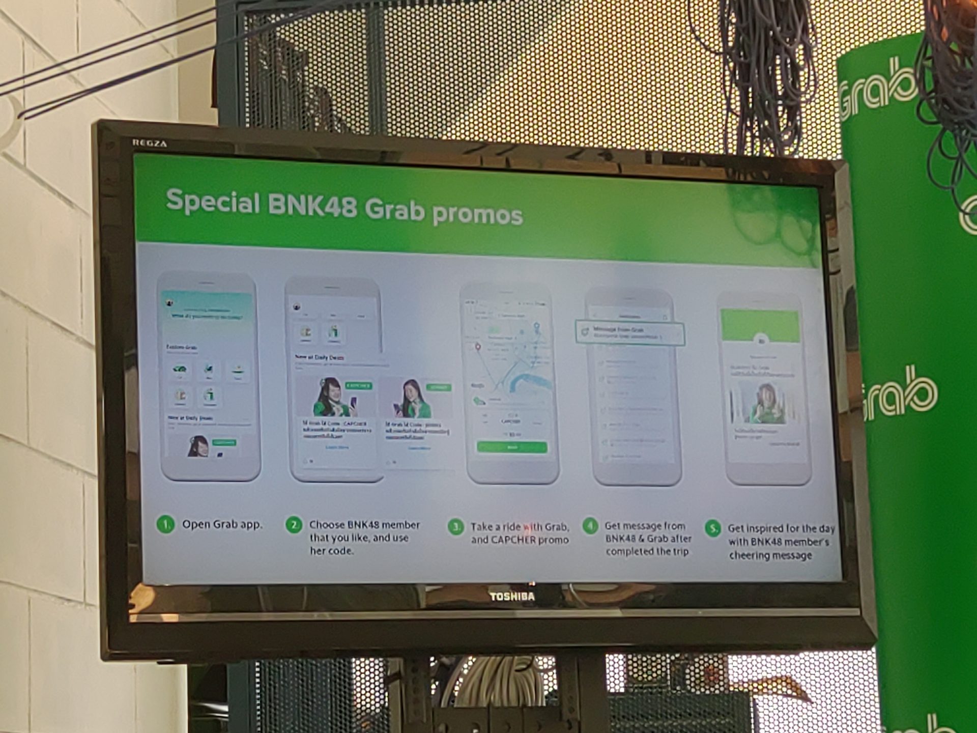 Grab มองว่า BNK48 เป็น Partnership ที่ช่วยเจาะกลุ่มฐานผู้ใช้งานเพิ่มได้ โดยเฉพาะกลุ่มวัยรุ่น และปัจจุบันมีส่วนลดในกรณีใช้ชื่อน้อง ๆ BNK48 แต่ละคน จะได้รับส่วนลด 20 บาทขึ้นไป และในอนาคตจะมีกิจกรรมต่าง ๆ ที่จัดขึ้นเพื่อเหล่าโอตะอีกด้วย